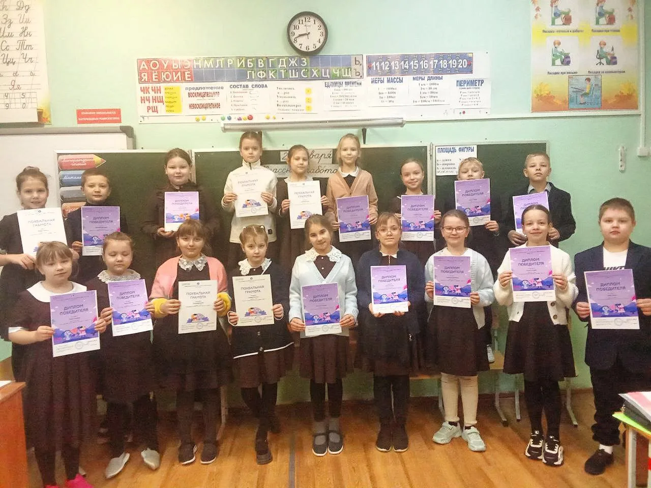 За свои успехи ученики всего класса награждены дипломами победителей и похвальными грамотами.