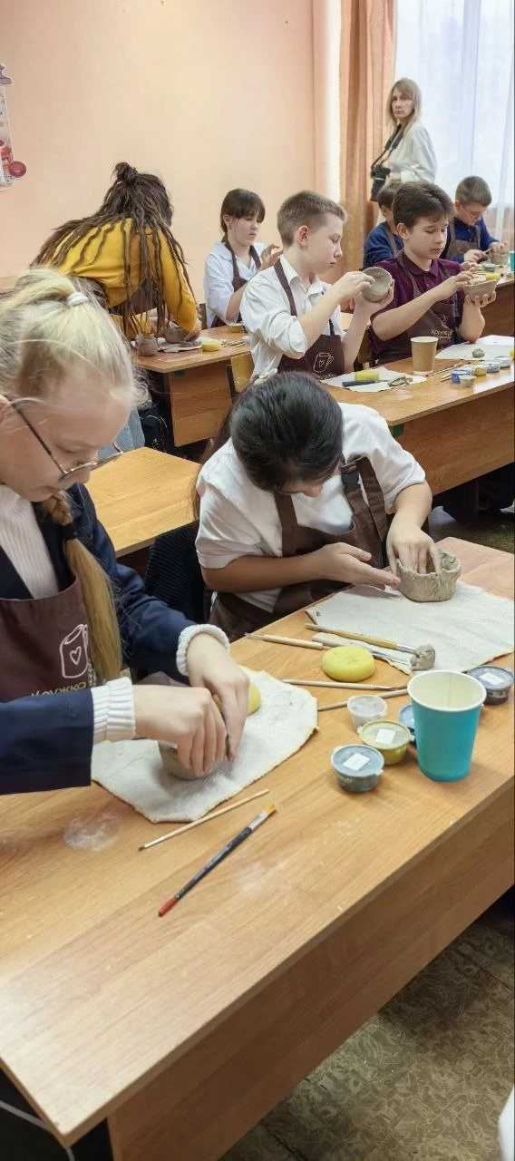 27 января учащихся 5 “Б” класса был проведен увлекательный мастер-класс по работе с глиной, направленный на укрепление семейных ценностей “Подарок папе”. Мастер-класс был посвящен созданию практичного и душевного подарка для пап — глиняной кружки. Руководитель начал занятие с краткого введения о значении подарка, сделанного своими руками. Была подчеркнута важность отцовской роли и то, что такой подарок, созданный стараниями ребенка, будет иметь особую ценность. Учащиеся были ознакомлены с основами работы с гончарной глиной и основными приемами лепки. Ребята с большим энтузиазмом приступили к работе. Каждый ученик старался придать своей кружке индивидуальность. Мастер-класс прошел в теплой, творческой атмосфере. Дети получили не только практические навыки работы с новым материалом, но и почувствовали радость от создания полезной вещи своими руками. Этот проект стал прекрасной возможностью для укрепления связи между детьми и их отцами через совместное использование подарка.