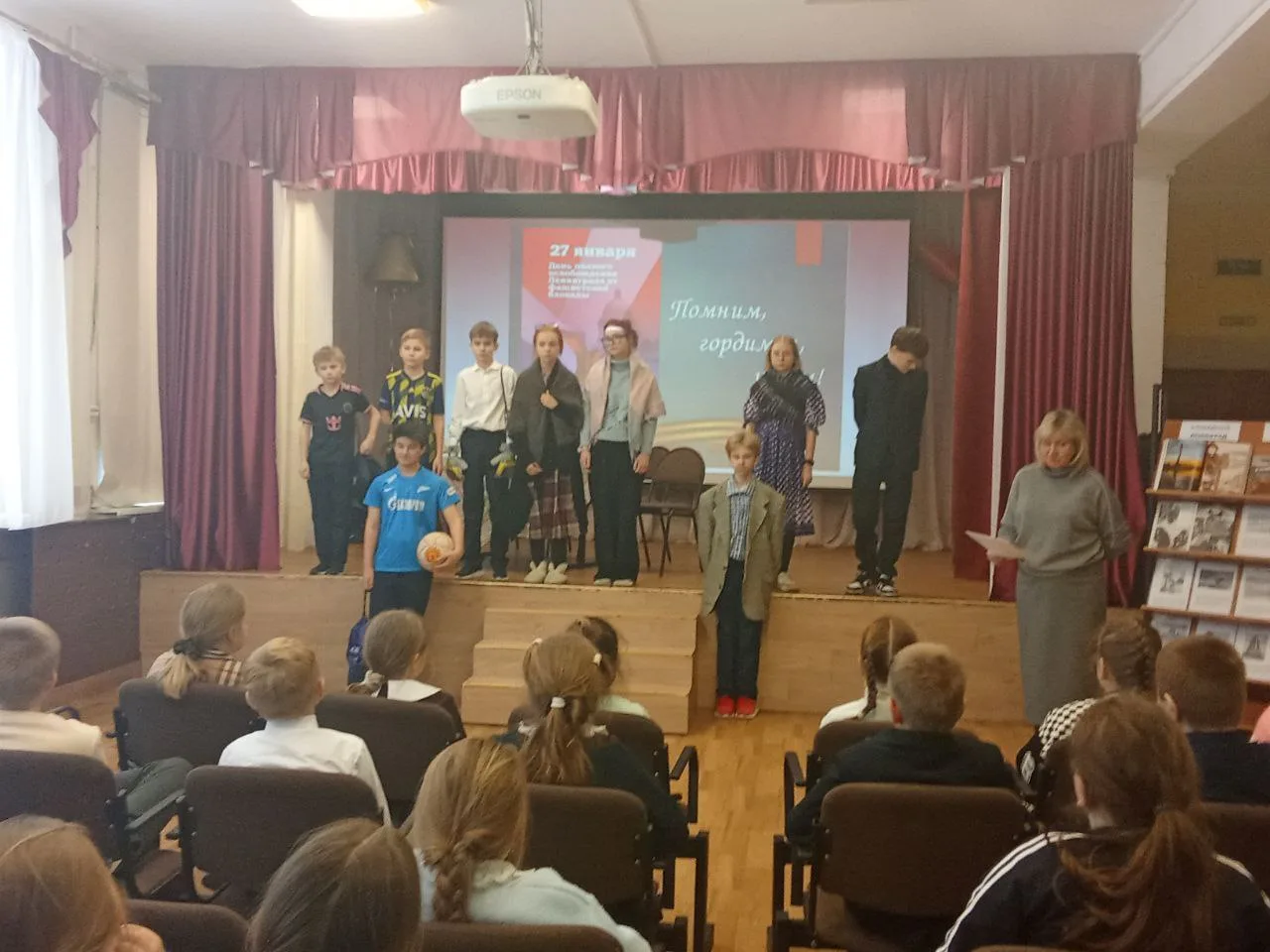 Утро началось с радиолинейки. Классы и коридоры наполнились мощным звучанием эпизода нашествия из легендарной 7-й «Ленинградской» симфонии Д.Д. Шостаковича. Эта музыка, написанная в осаждённом городе, стала звуковым символом несгибаемой воли и сразу настроила всех на серьёзный, памятный лад.