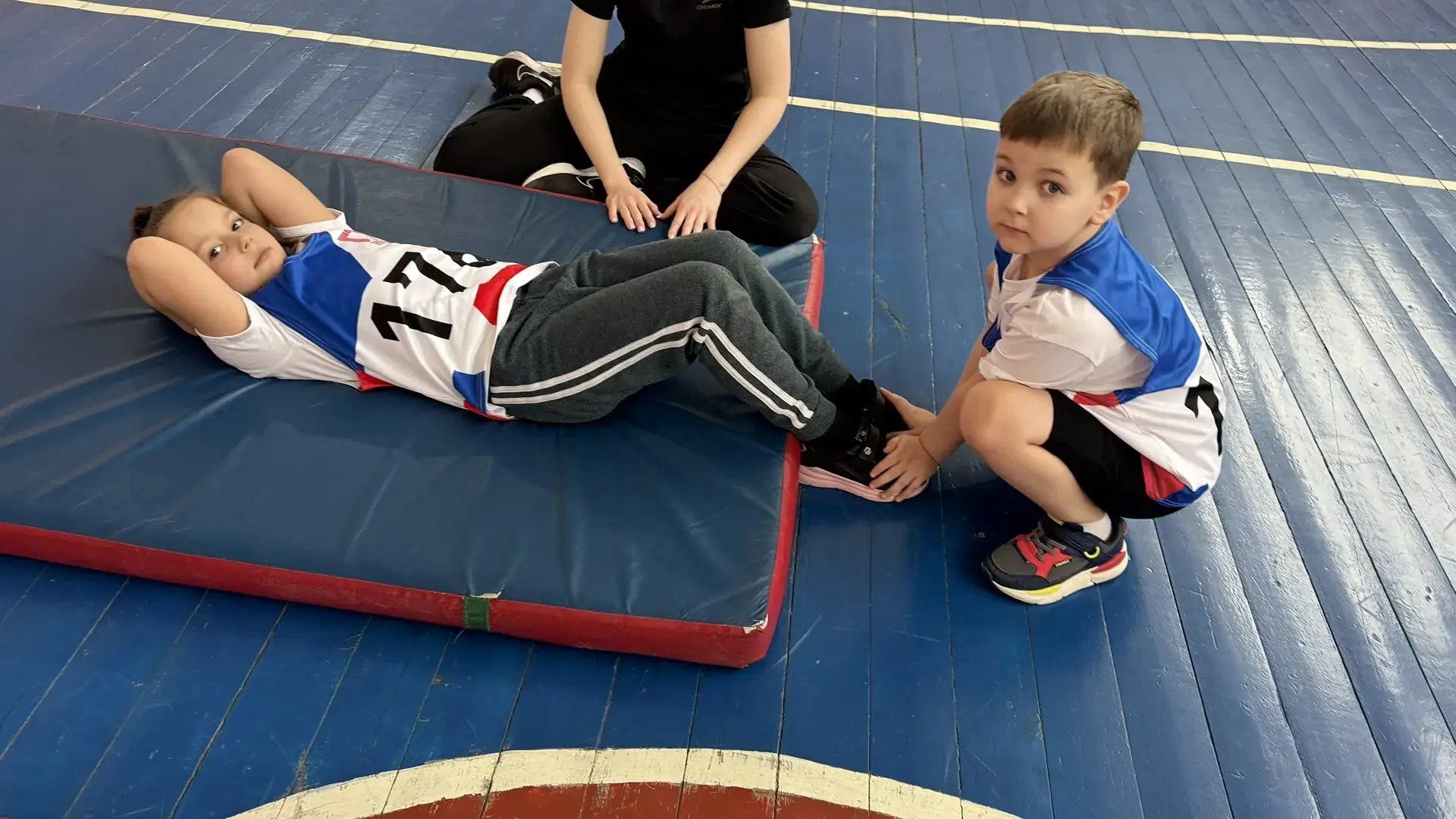 Для ребят были подготовлены специальные задания, адаптированные под возраст: бег на короткую и длинную дистанции, поднимание туловища из положения лежа, наклон вперед из положения стоя и метание мяча. Все упражнения направлены на развитие основных физических качеств: силы, выносливости, быстроты реакции и координации движений.