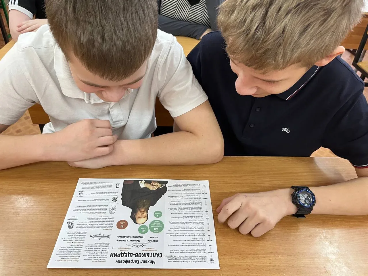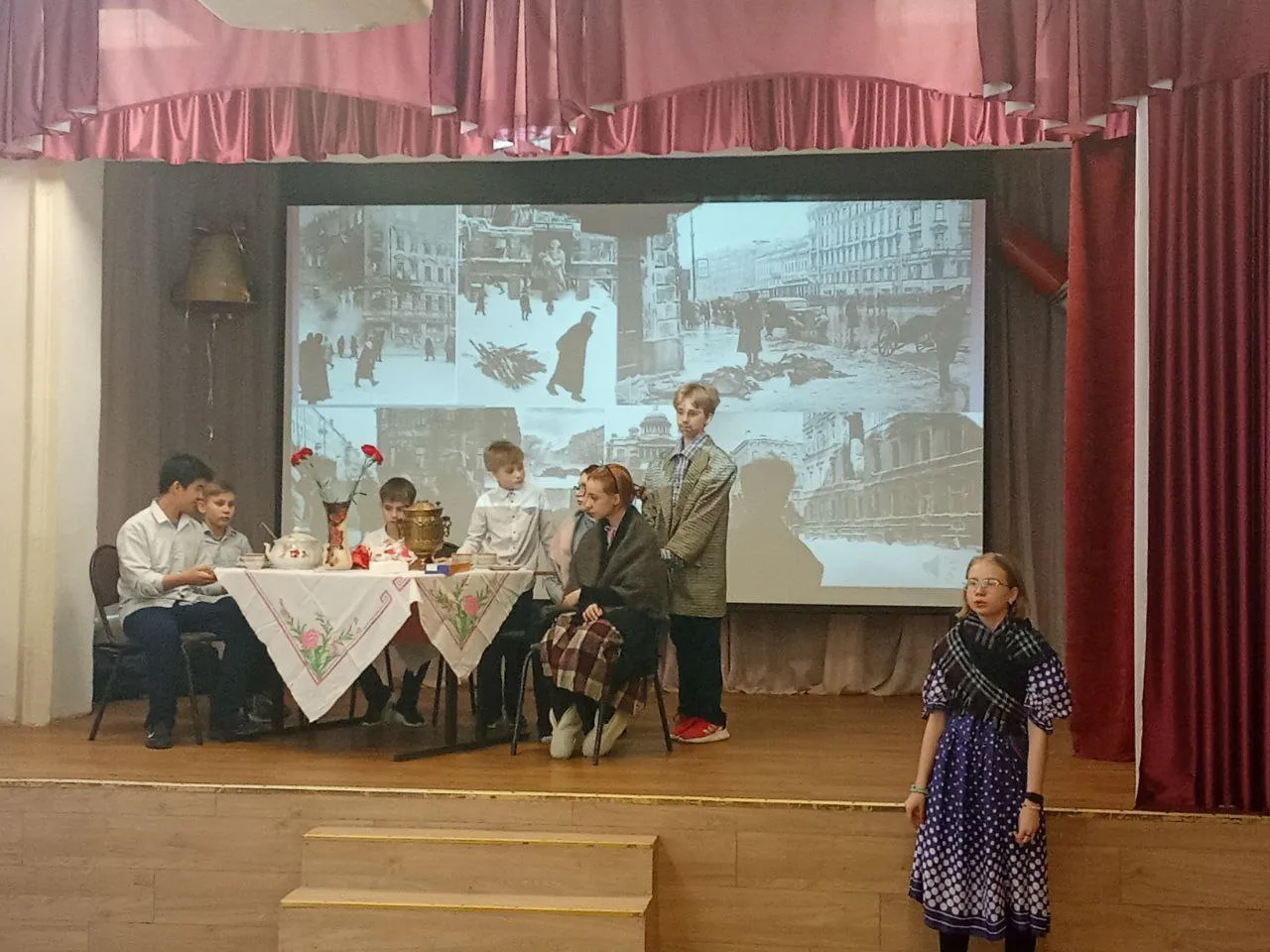 Ученицы 10 в Корнеева Ксения и Мухачева Мария (под руководством учителя истории Осокиной Елизаветы Юрьевны) представили доклады «Вещи блокадного Ленинграда» и «Блокадный Ленинград». Ребята увидели, как обычные предметы — кусочек хлеба, крошечный дневник, санки, метроном — становятся символами невероятного мужества. Ученицы 11в Любцова Полина, Пучкова Софья, Вилкова Кира (под руководством методиста Люшиной Ларисы Николаевны, на основе материалов учителя истории Ольчевой Людмилы Викторовны) рассказали о нечеловеческих условиях в концлагерях Треблинки, Дахау, Саласпилса, Беларуси и др.