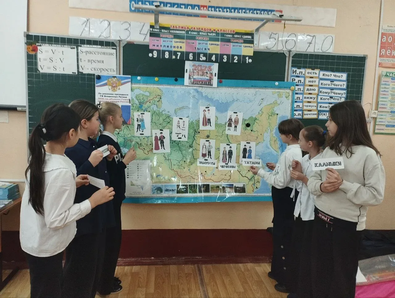 02 февраля в рамках внеурочной деятельности «Наша Родина от края и до края», в четвертых классах проведено познавательное занятие, посвященное «Году единства н народов России», направленное на укрепление гражданственности и патриотизма. Основная цель - объяснить на доступном для младших школьников уровне, что Россия — это огромное государство, где мирно сосуществуют десятки различных культур, языков и традиций, и что именно в этом многообразии заключается сила страны. Урок начался с яркой и наглядной презентации. Ребята совершили виртуальное путешествие по разным регионам России. Учащимся были показаны красочные изображения национальных костюмов, предметов быта и сувениров. Особое внимание классные руководители Гончарова Л.Н. и Гуляева Т.А. уделили информированию о новых государственных датах, подчеркивая внимание государства к сохранению культурного наследия. Занятие завершилось обсуждением важности дружбы, взаимопонимания и уважения в коллективе. Ребята делились своими мыслями о том, как важно дружить с одноклассниками, независимо от их национальности или семейных традиций.