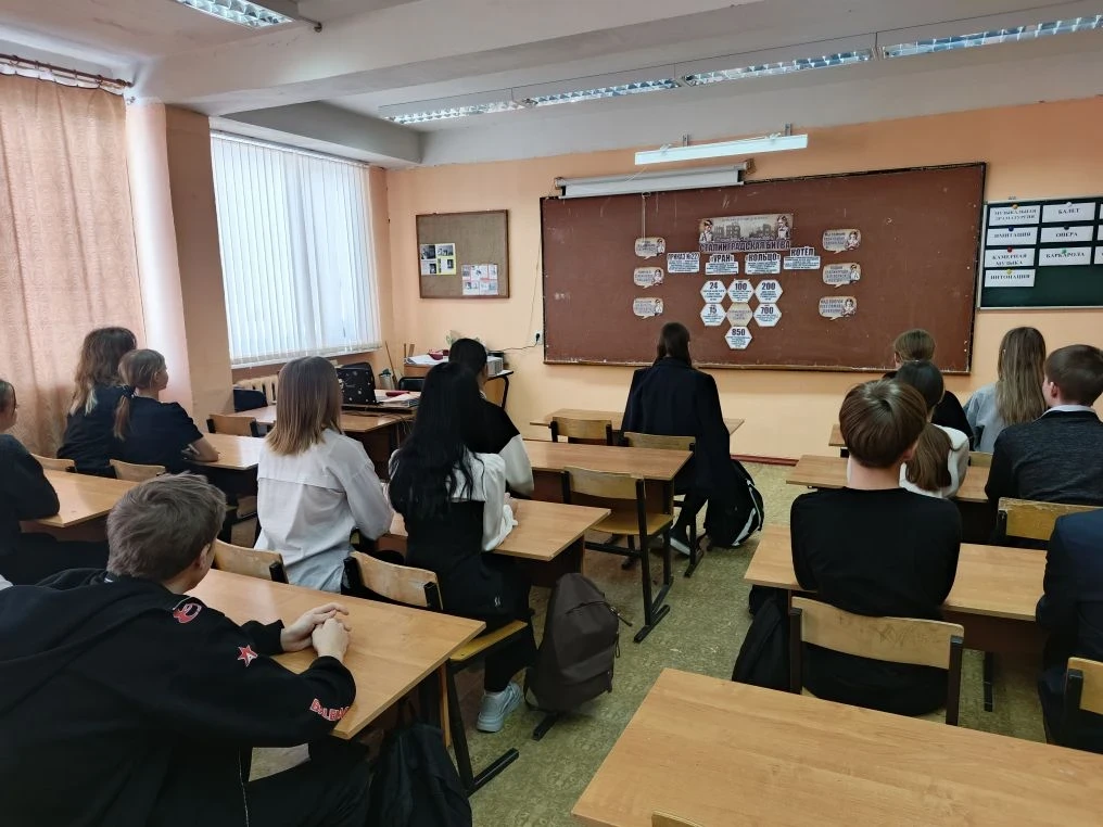 2 февраля для 7–9 классов был проведен тематический патриотический час, приуроченный ко «Дню воинской славы России» — «Дню полного разгрома советскими войсками немецко-фашистских войск в Сталинградской битве».