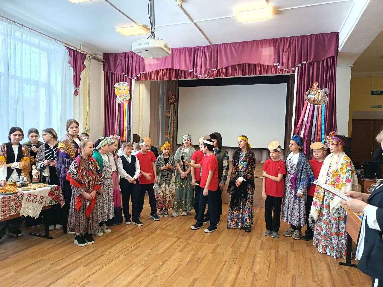🥞 Классные кабинеты и актовый зал наполнился ароматом свежей выпечки,а школьные столы превратились в произведения искусства: пузатые самовары, расписные подносы и, конечно, горы золотистых блинов. Фантазия в оформлении столов была просто невероятной!
