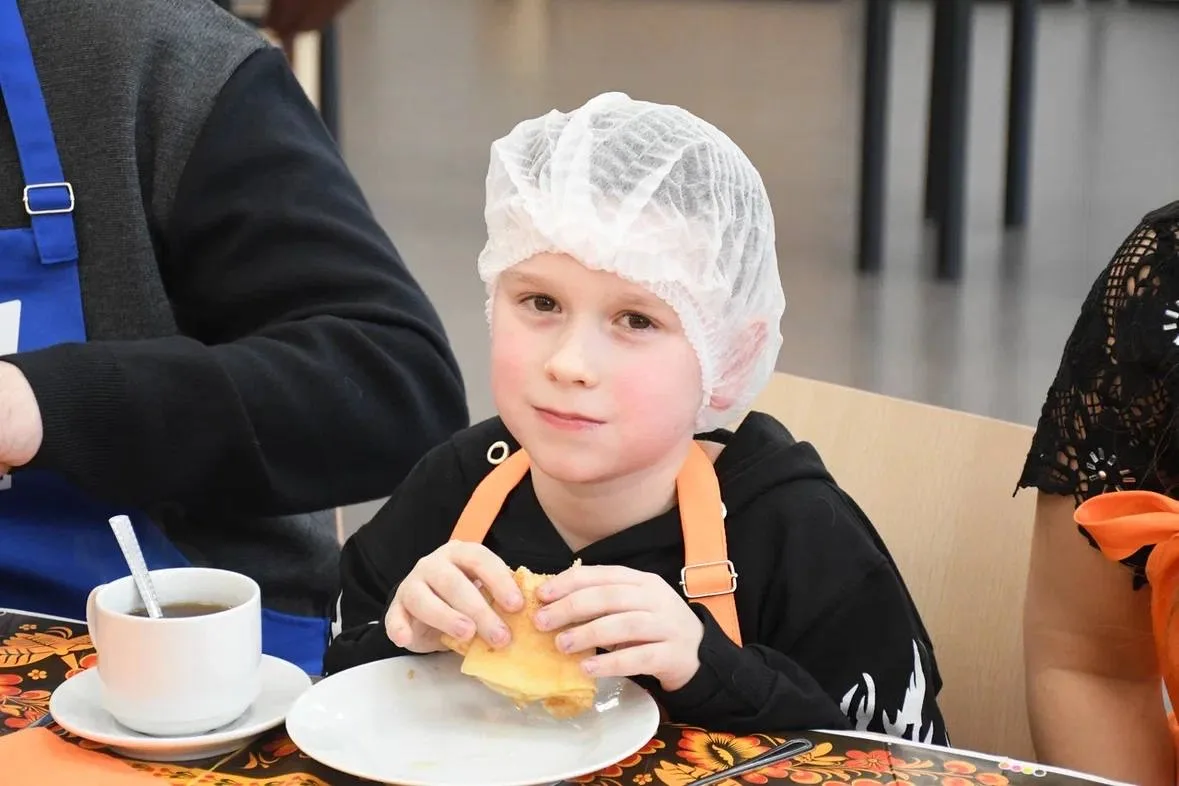🤩 Вместе с детьми военнослужащих, которые находятся в зоне СВО, а также с педагогами, чьи мужья защищают интересы нашей страны, и молодогвардейцами — испекли блины.