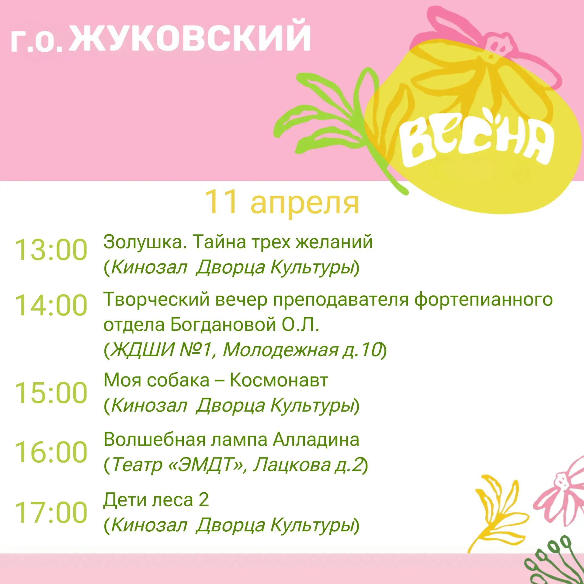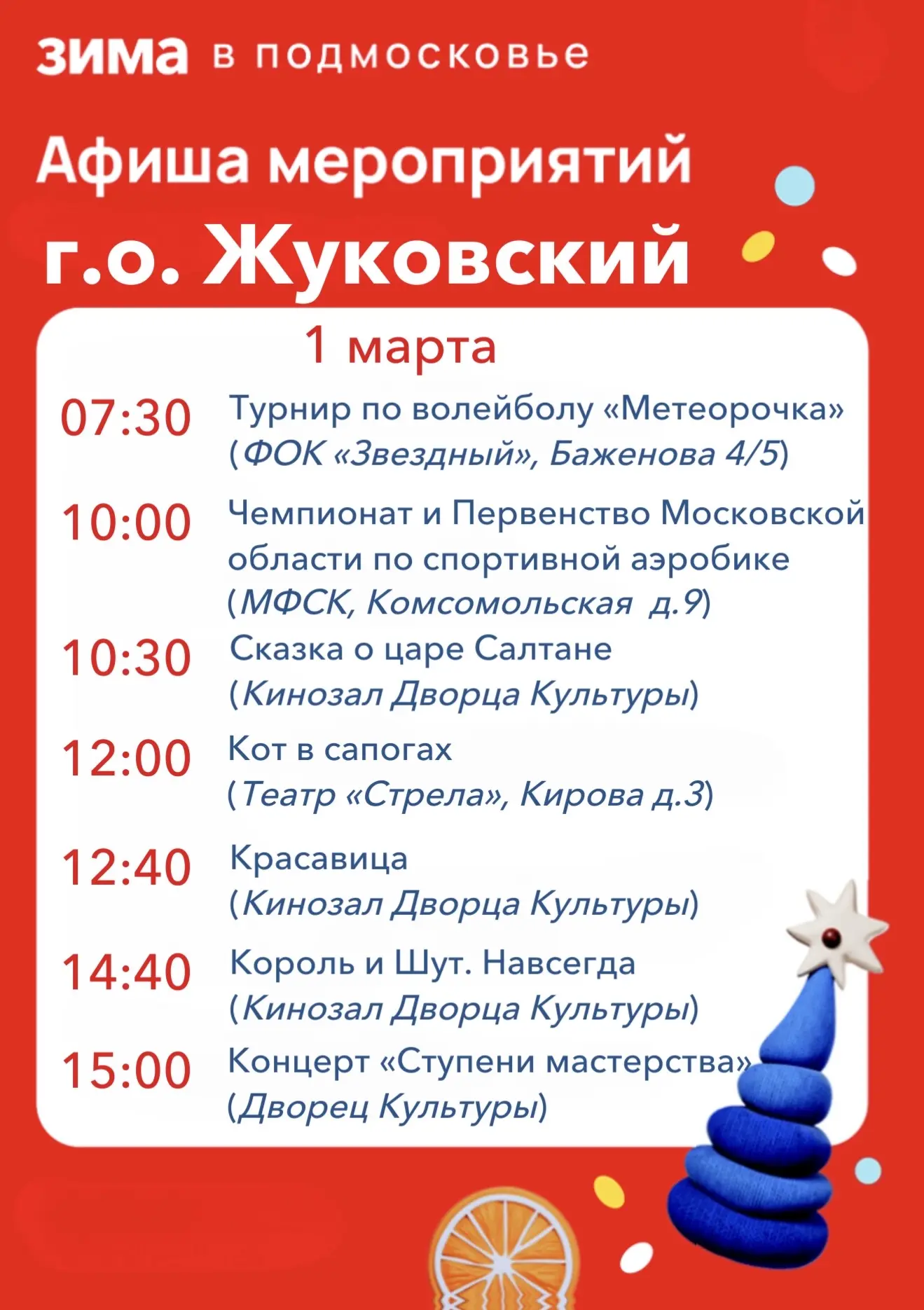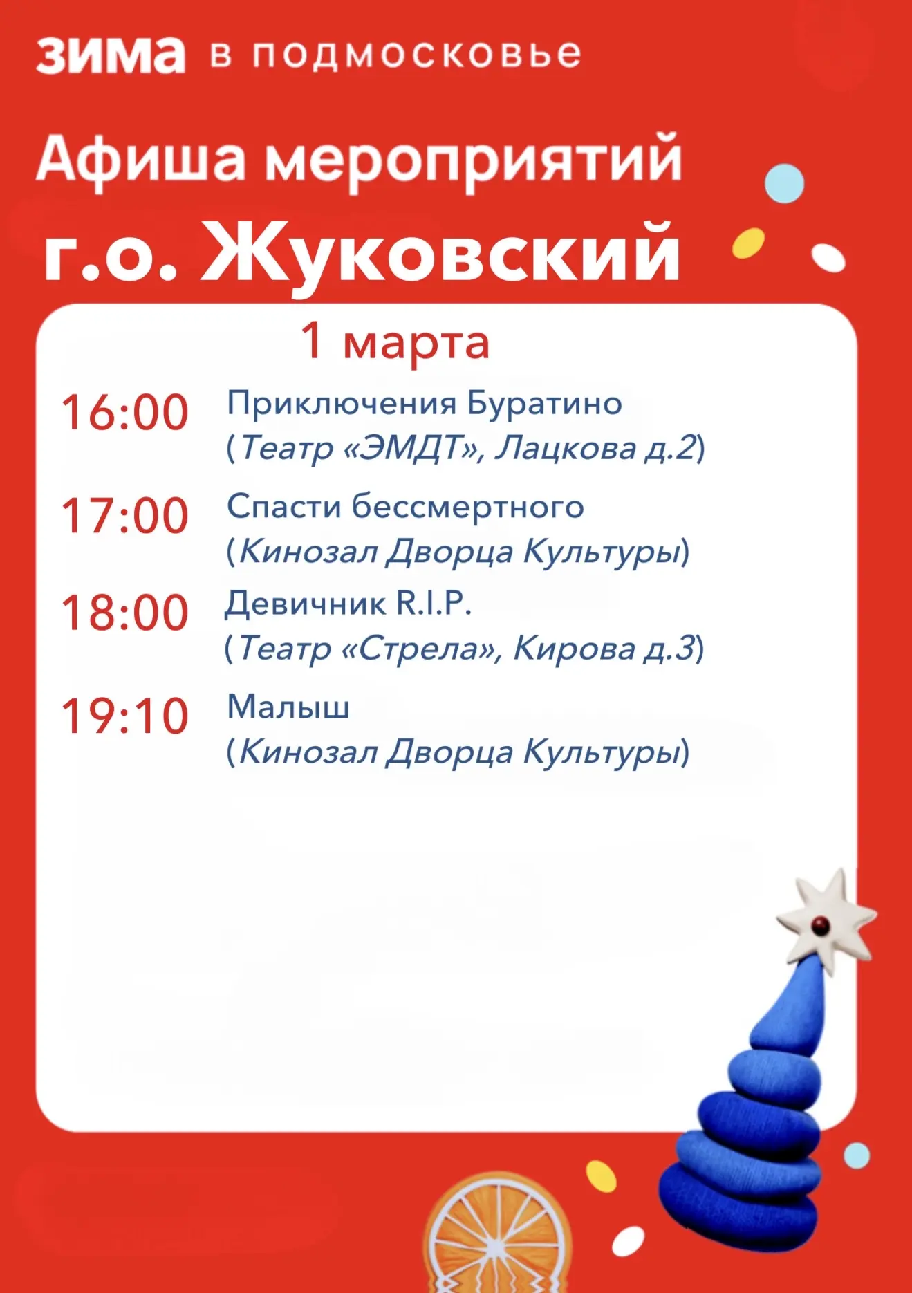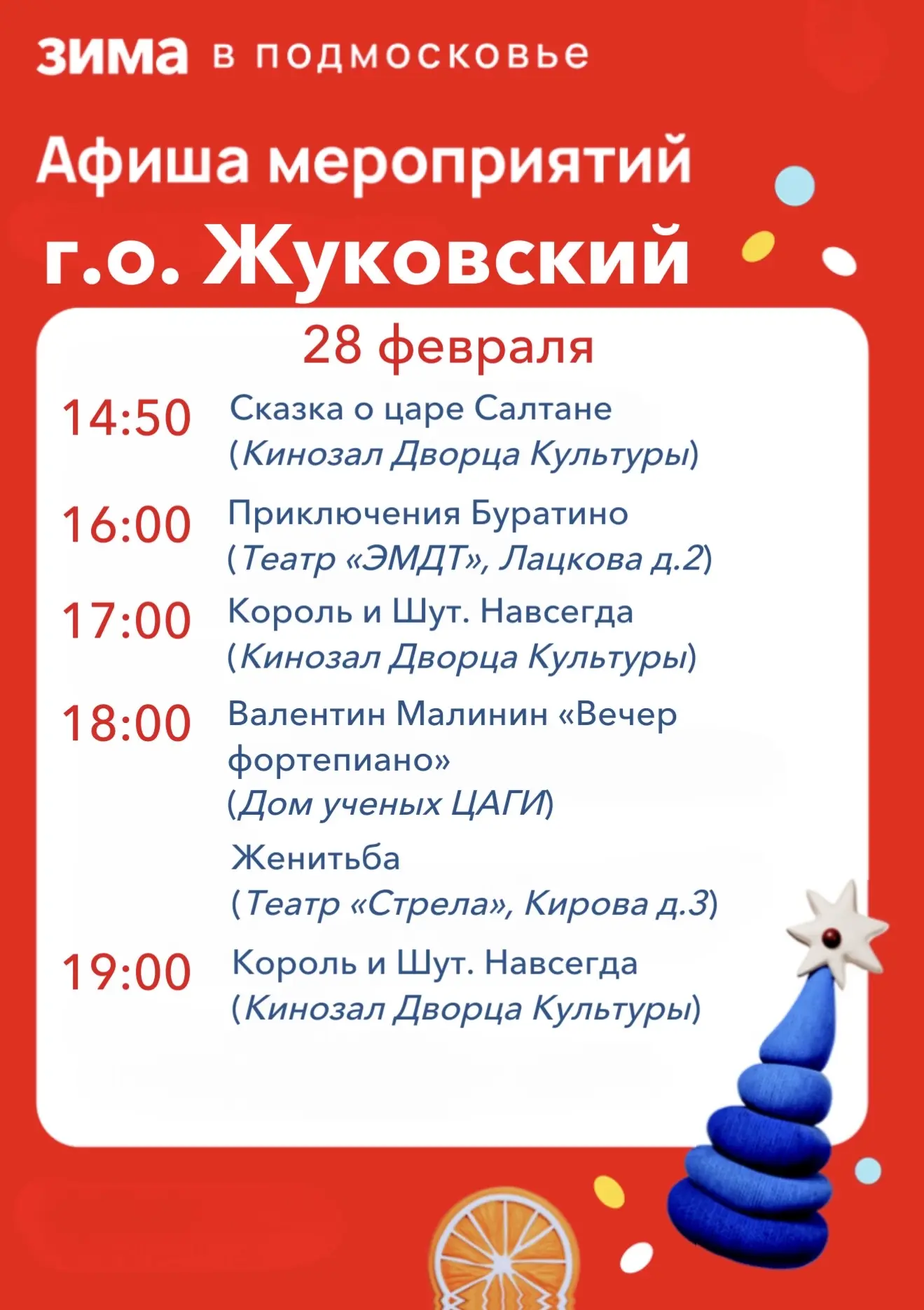 Дорогие жуковчане! Предлагаю ознакомиться с афишей мероприятий на эти выходные!