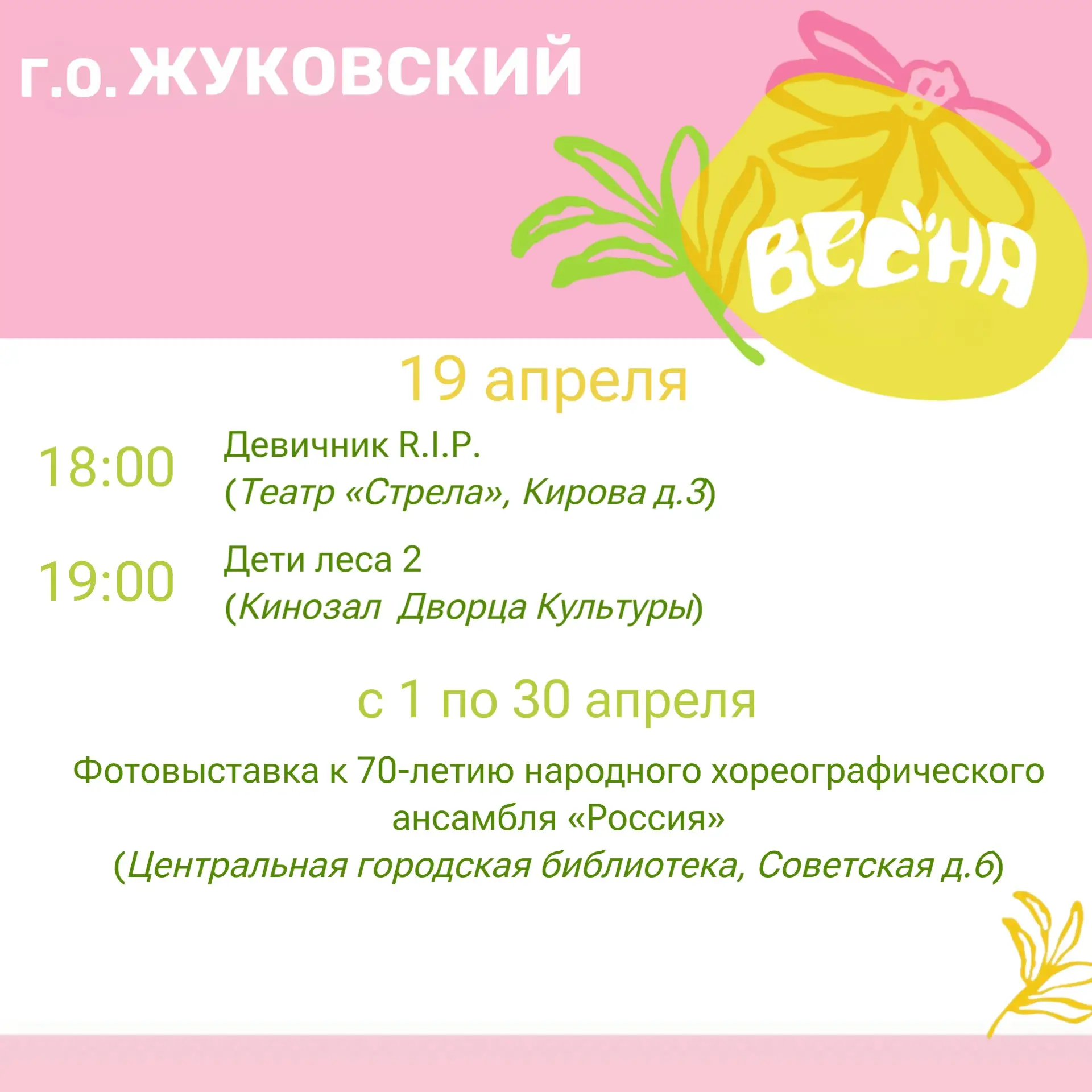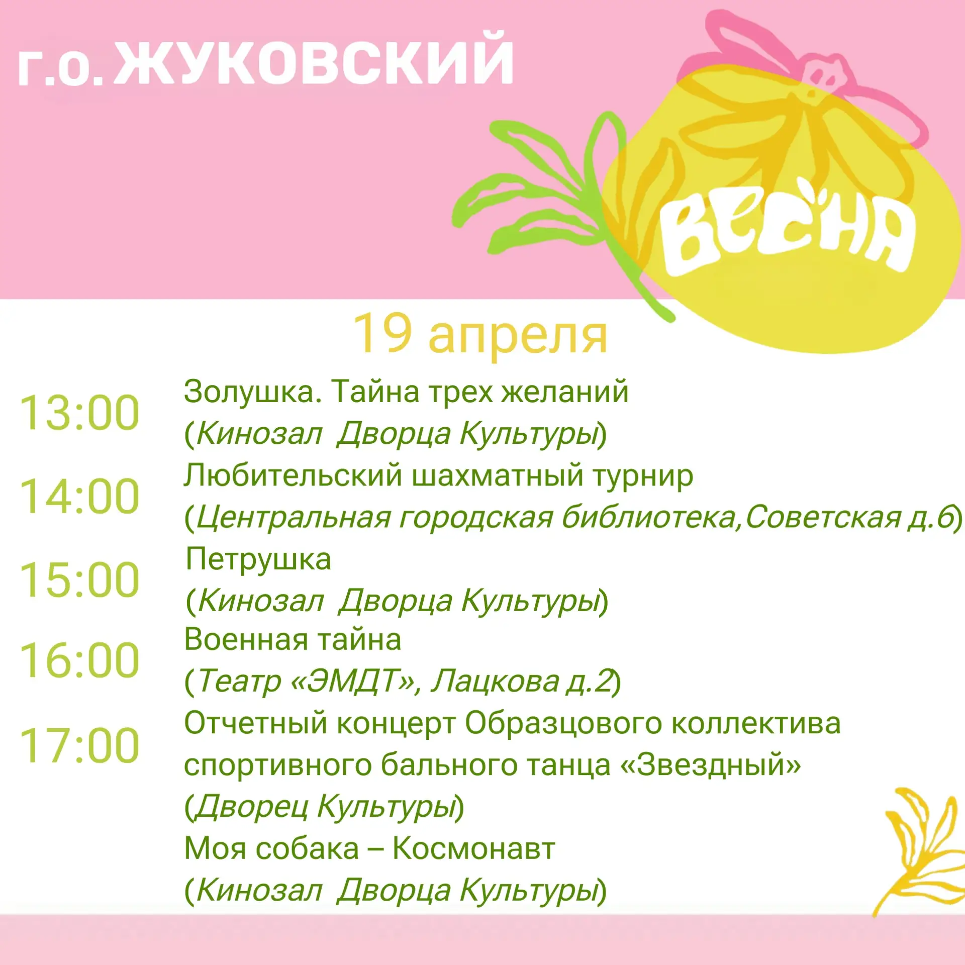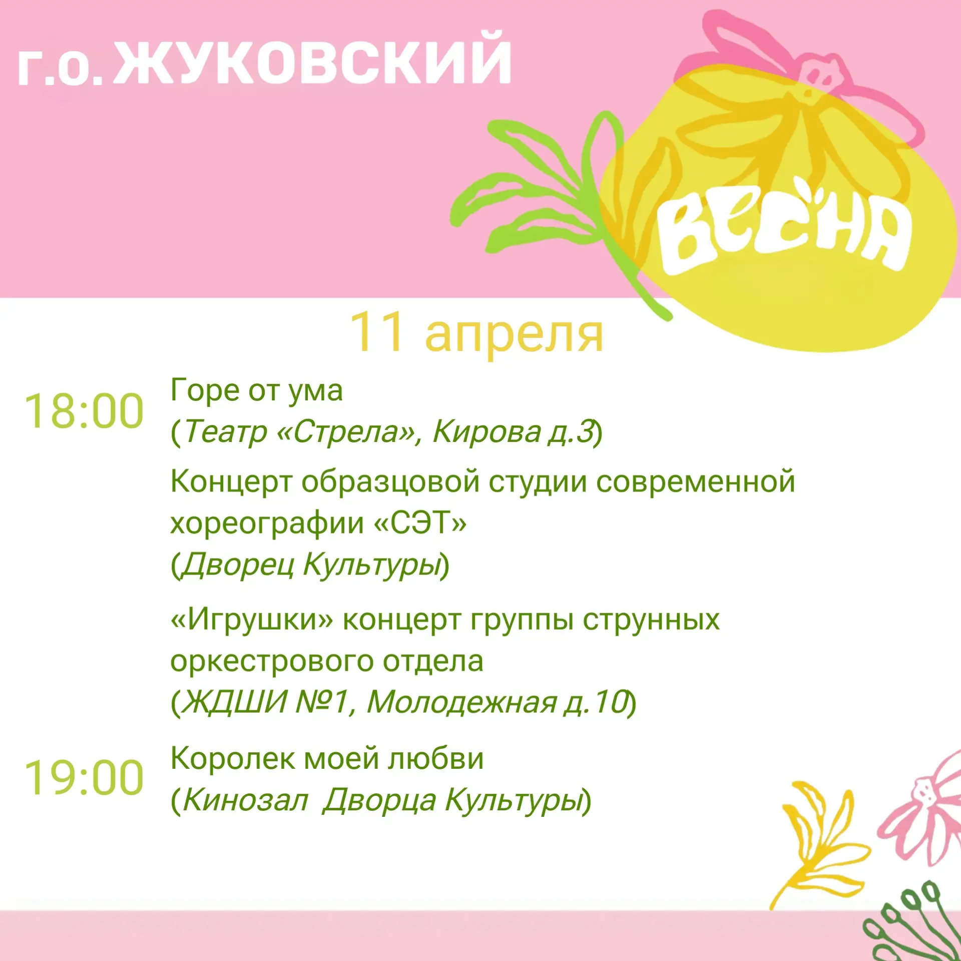 Дорогие жуковчане! Предлагаю ознакомиться с афишей мероприятий на эти выходные!