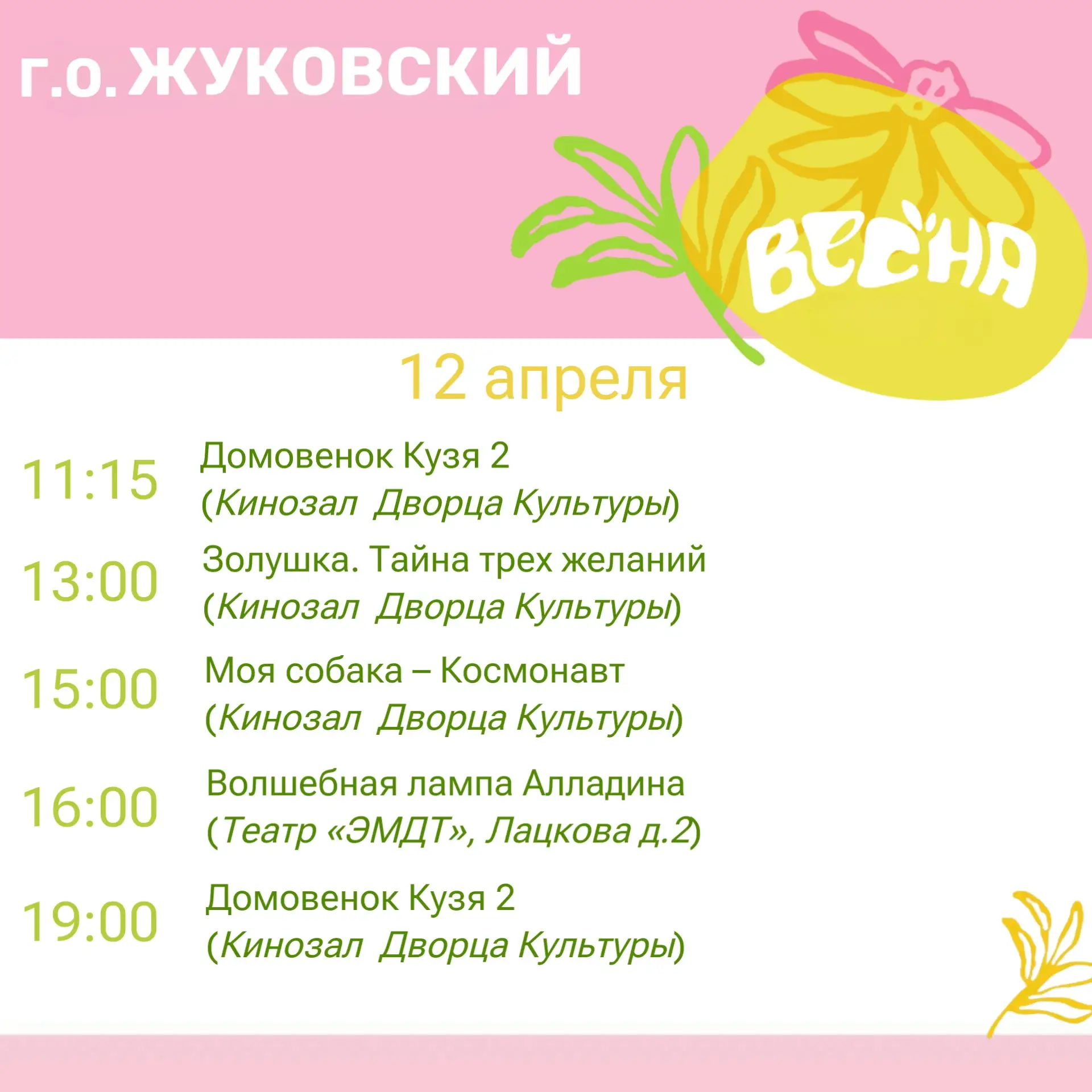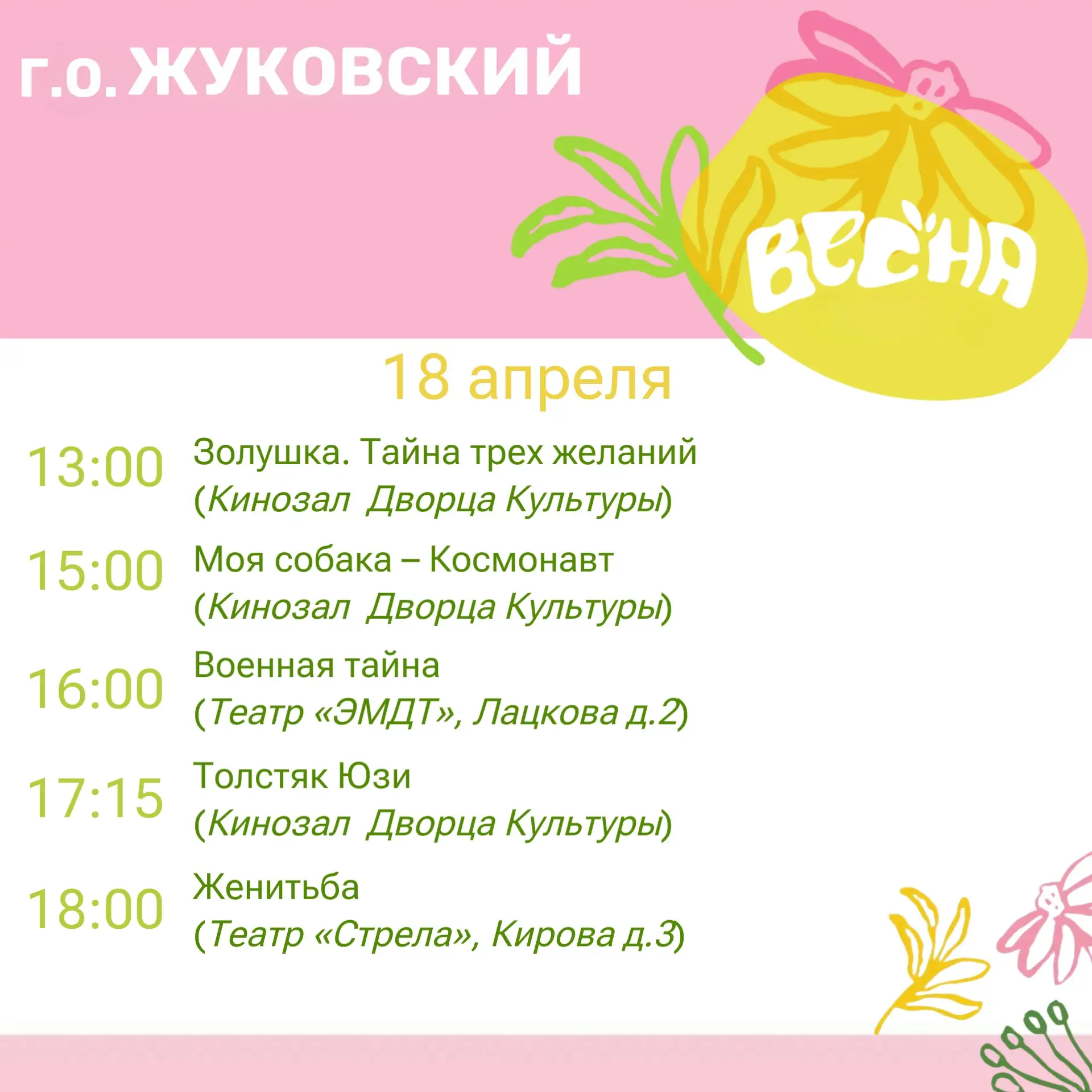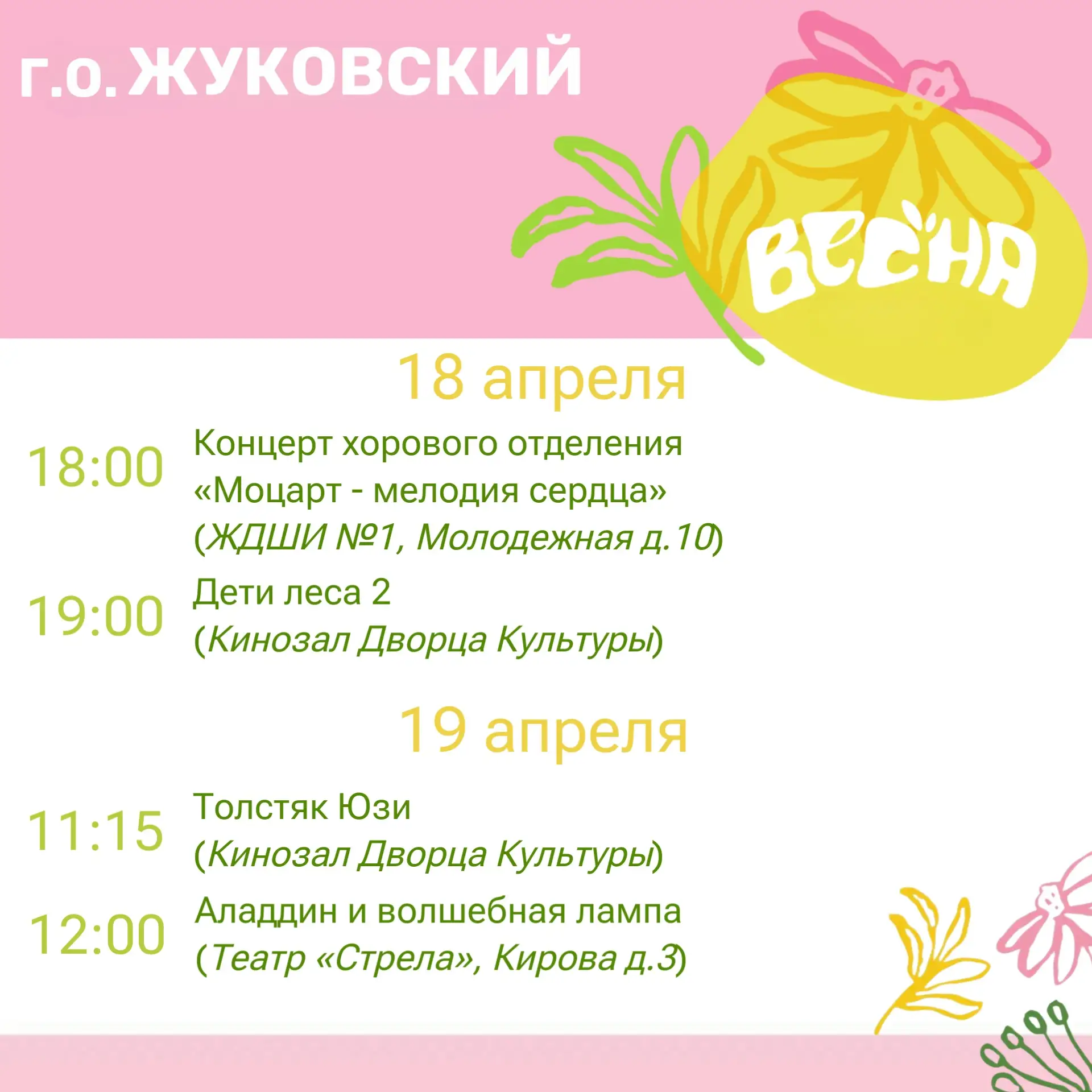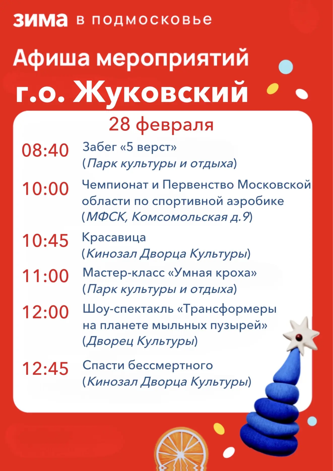 Дорогие жуковчане! Предлагаю ознакомиться с афишей мероприятий на эти выходные!