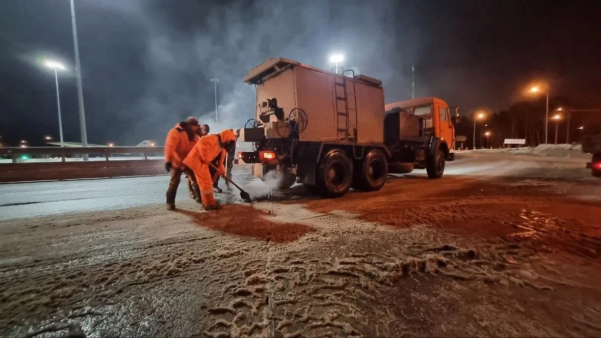 🛣 Кроме того, продолжаем обрабатывать проезжие части и тротуары противогололедными средствами.