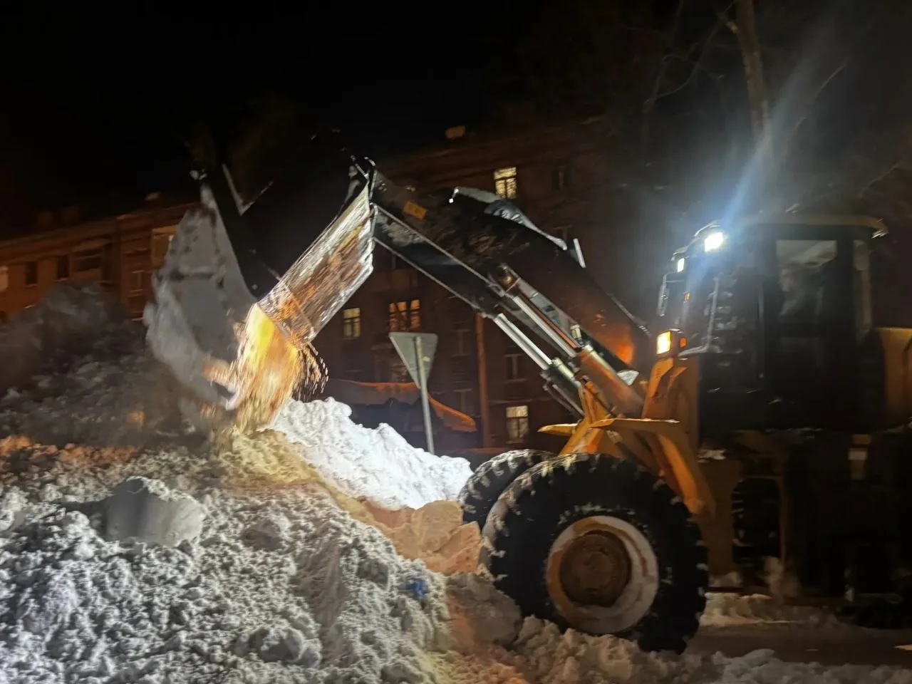 🚜 Продолжаем убирать и вывозить снег.