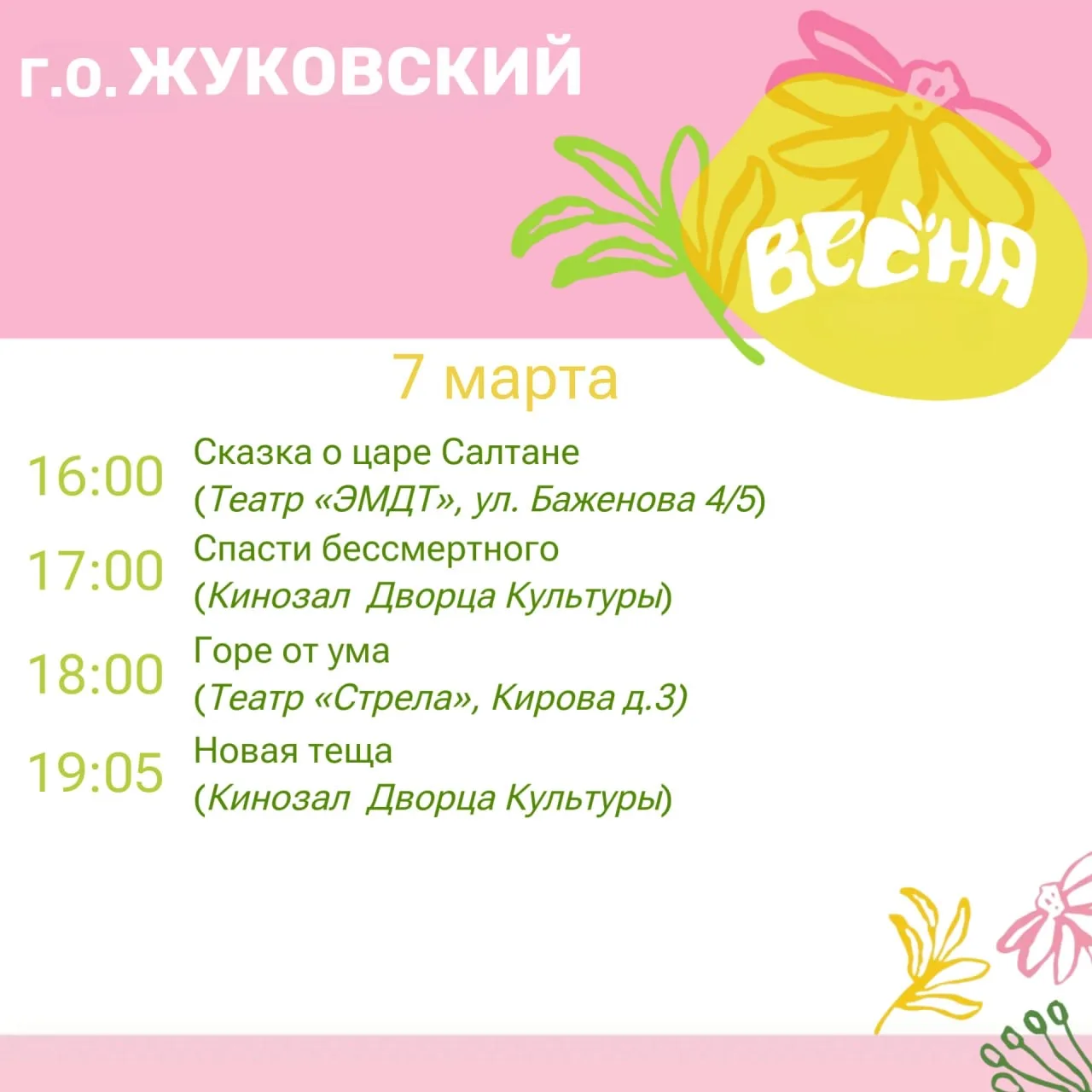 Дорогие жуковчане! Предлагаю ознакомить c афишей мероприятий на выходные