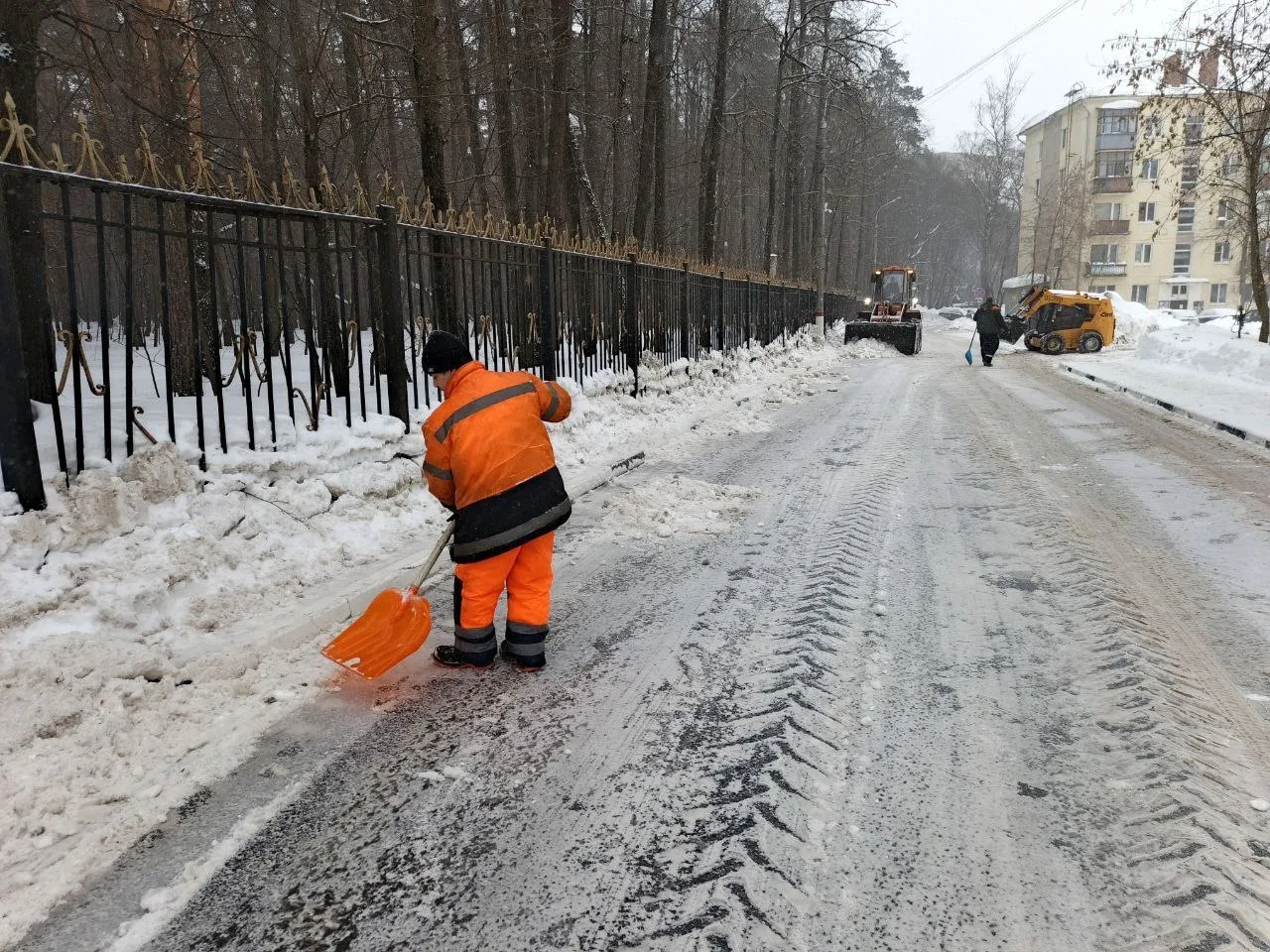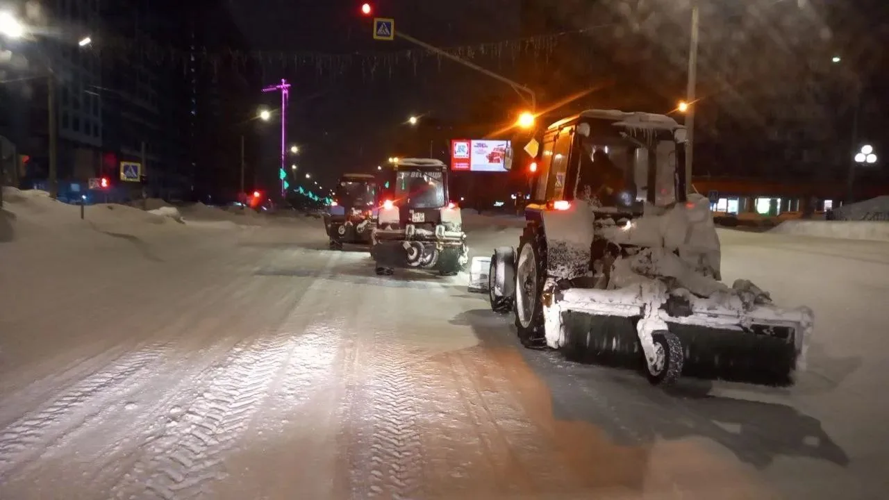 🚜 Коммунальные службы работают в усиленном режиме. В первую очередь расчищают проезжие части, тротуары, подходы к социальным объектам, выходы из подъездов, остановки.