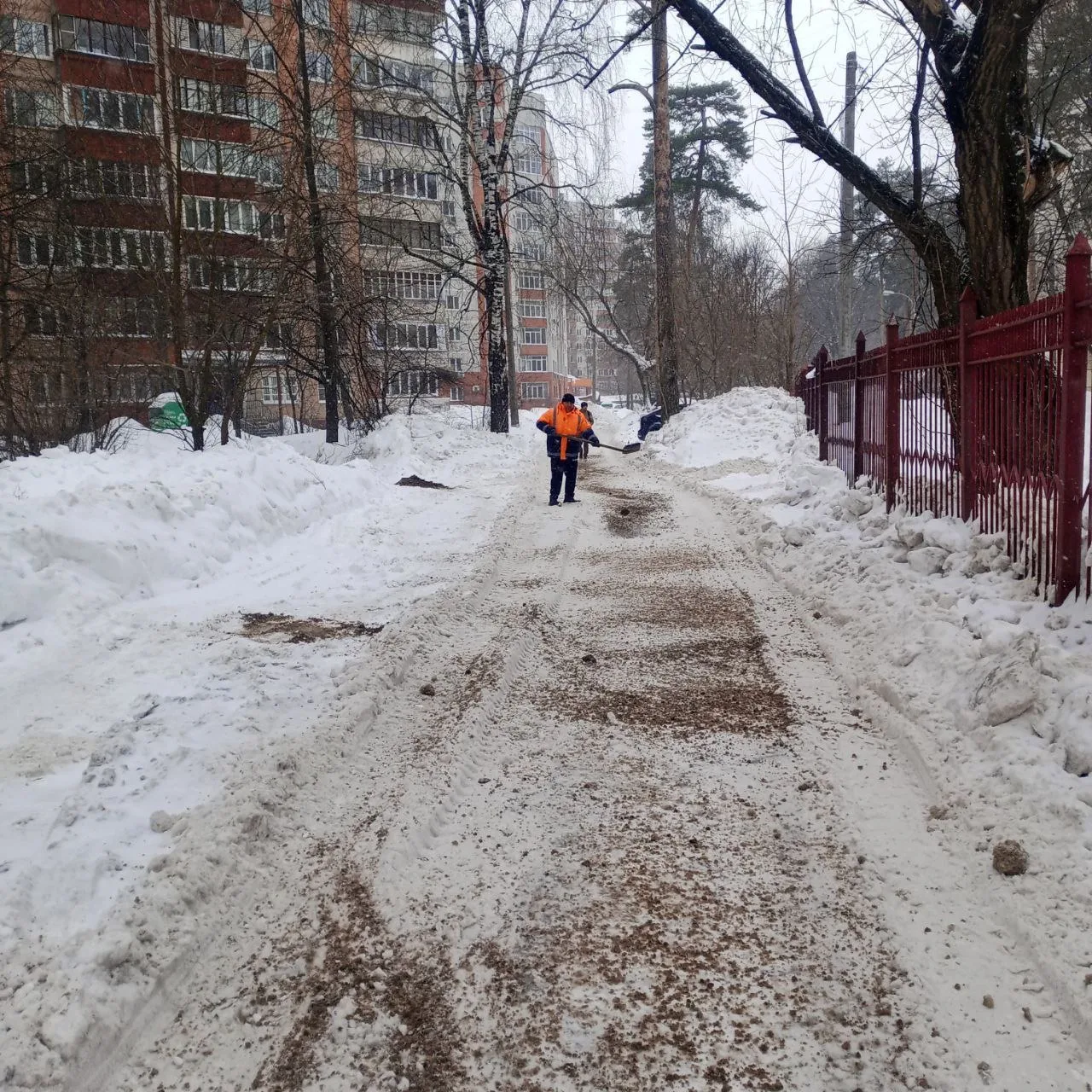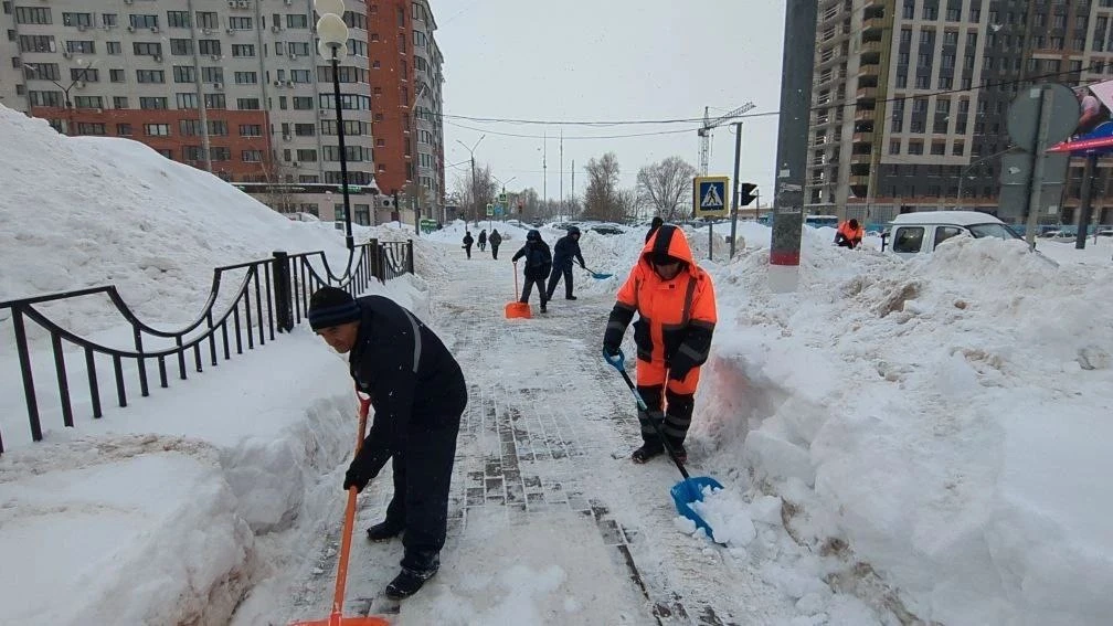❄️ Управляющие компании с 6 утра вышли убирать тротуары вдоль домов и входные группы в подъезды.