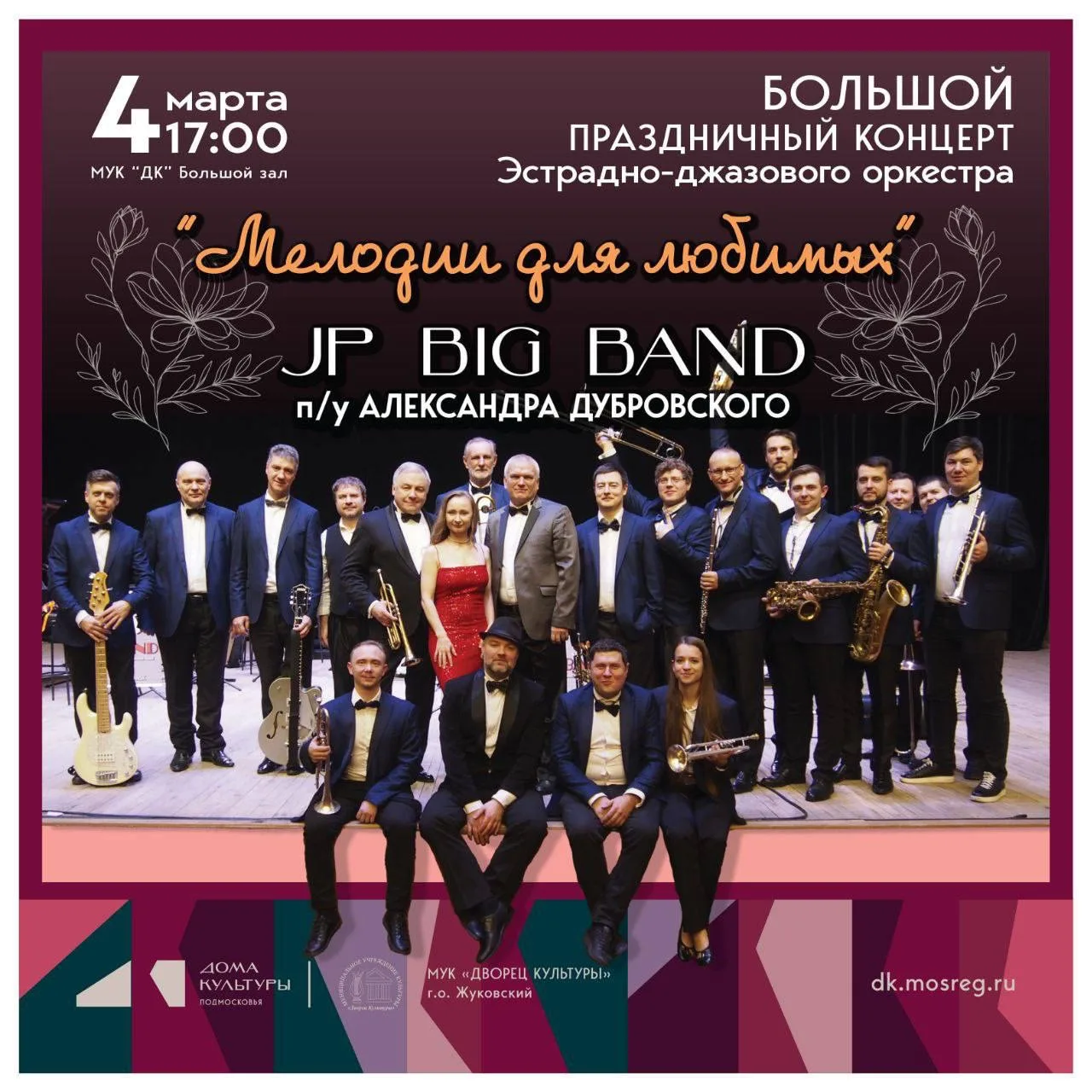 🎷 Во Дворце культуры выступят творческие коллективы нашего города и Эстрадно-джазовый оркестр JP BIG BAND под управлением Александра Дубровского.
