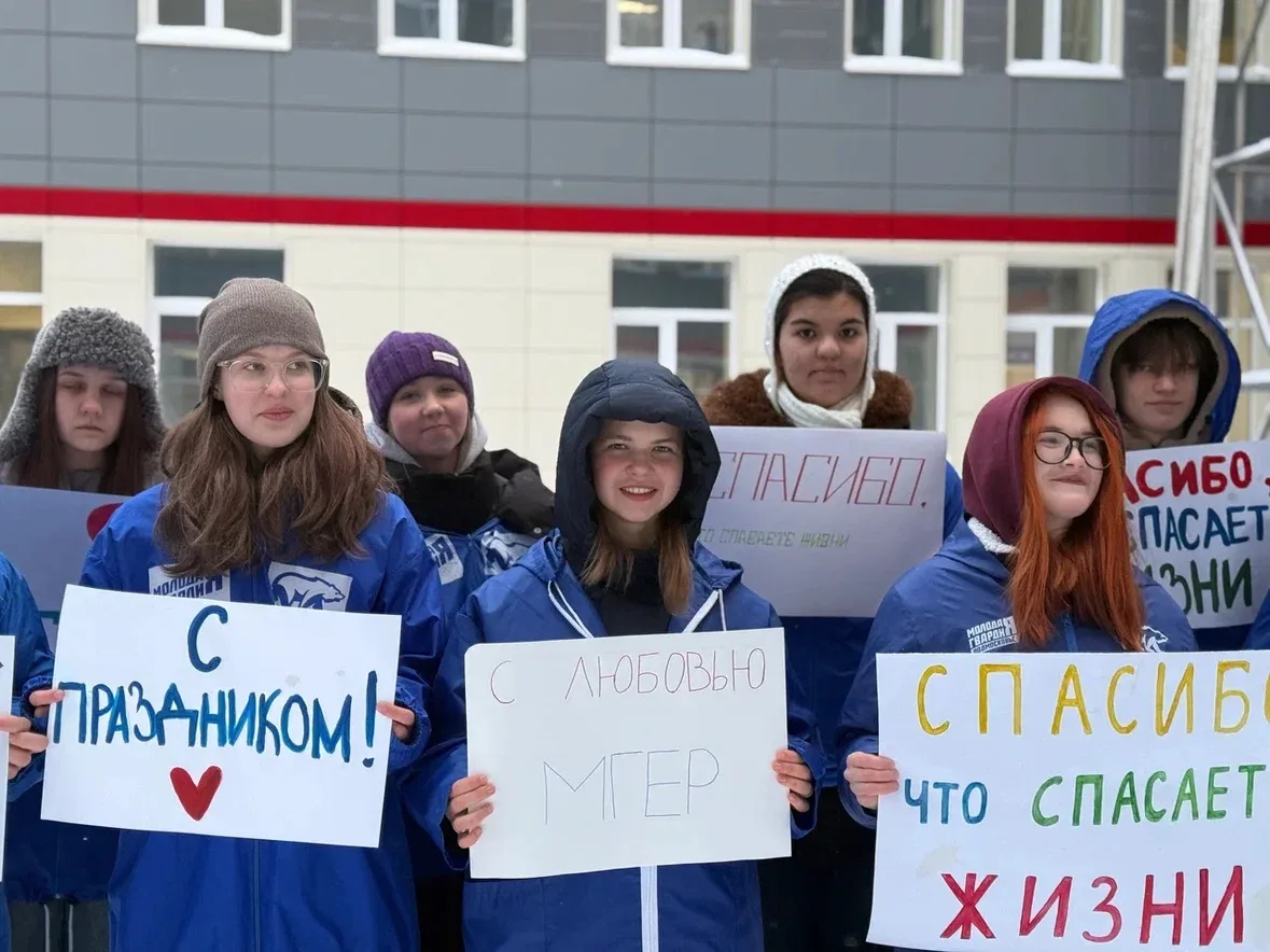 👍Сегодня сотрудников нашей жуковской подстанции скорой медицинской помощи поздравили молодогвардейцы «Единой России».