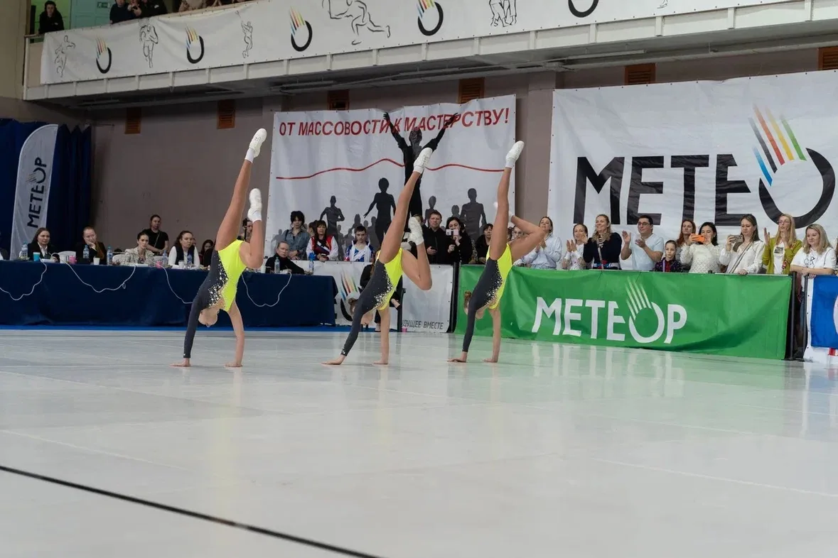 🤸♀️350 спортсменов из Жуковского, Раменского, Люберец, Домодедово, Дмитрова, Можайска, Солнечногорска и Химок принимают участие в соревнованиях, которые проходят в групповом и индивидуальном зачетах.