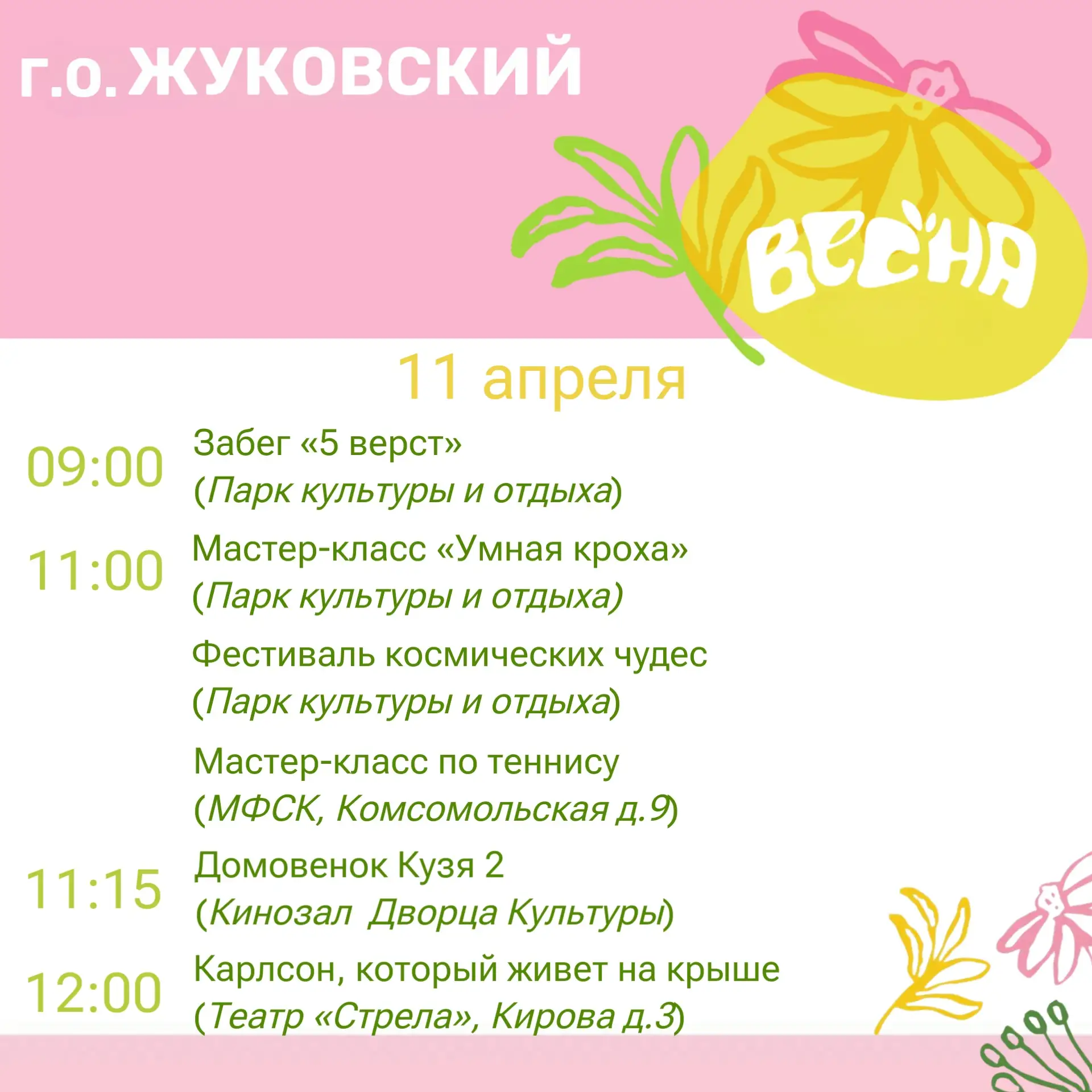 🏃 В Парке культуры и отдыха пройдет забег «5 верст» и мастер-класс «Умная кроха».
