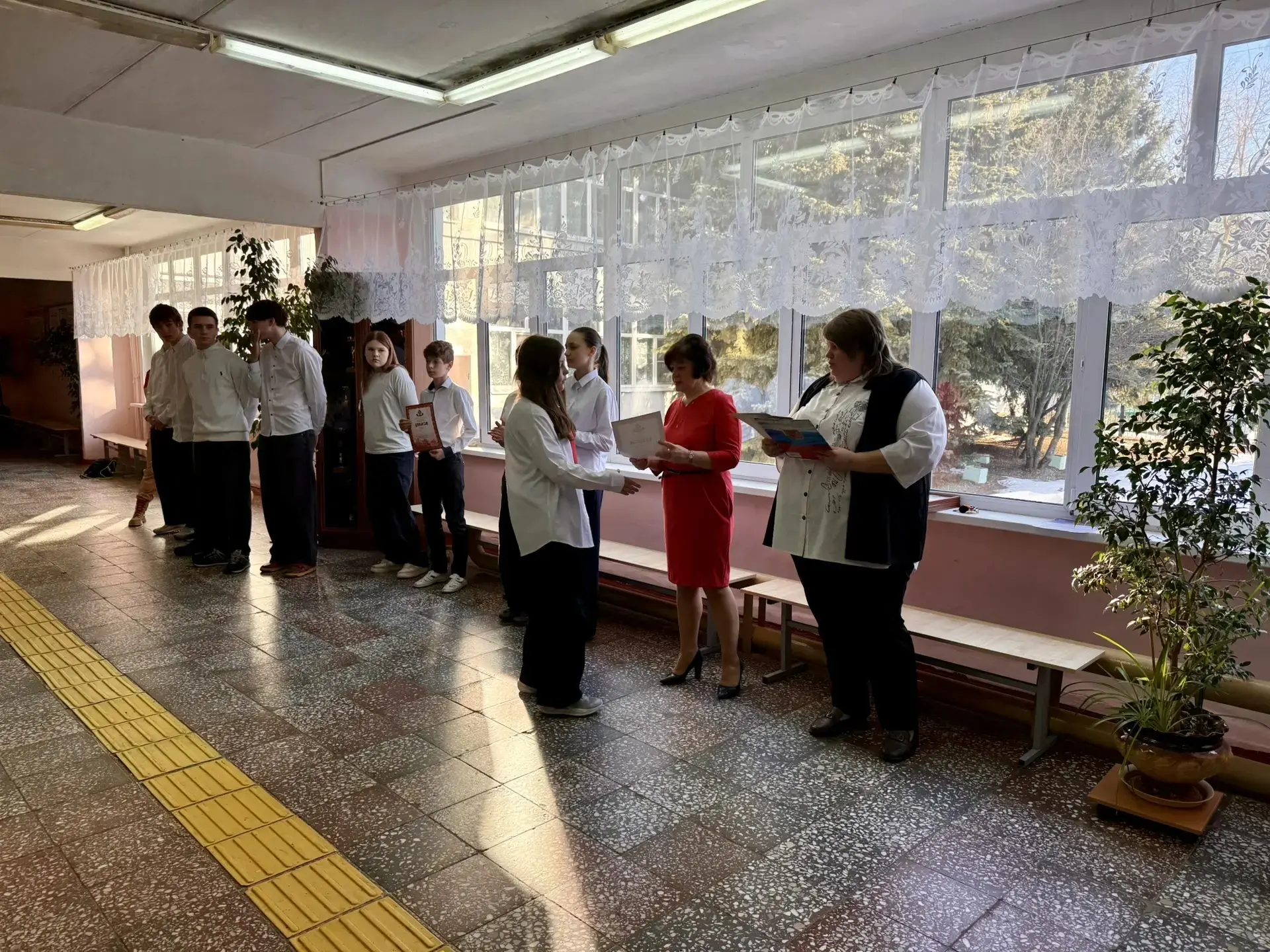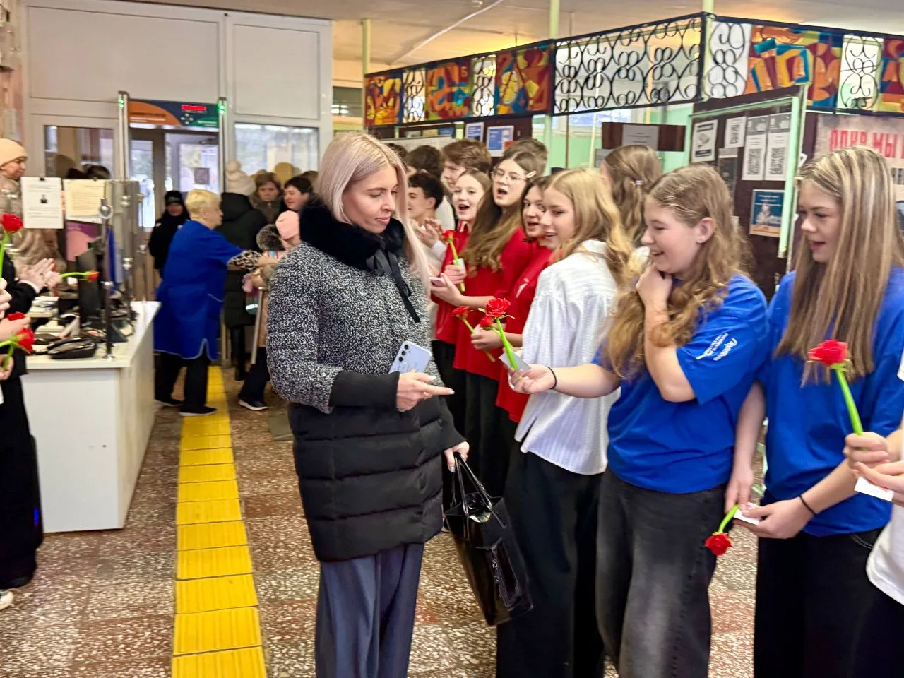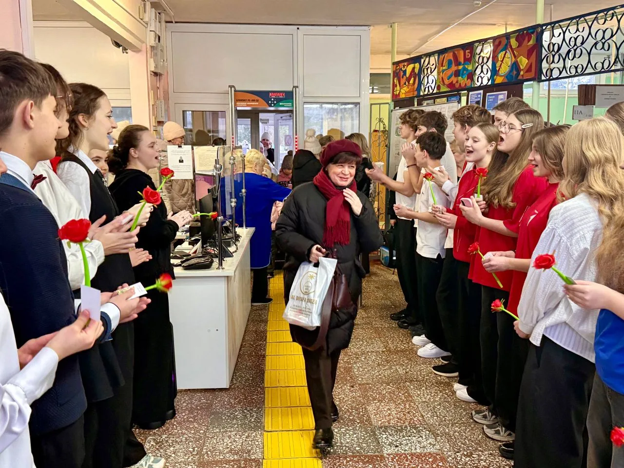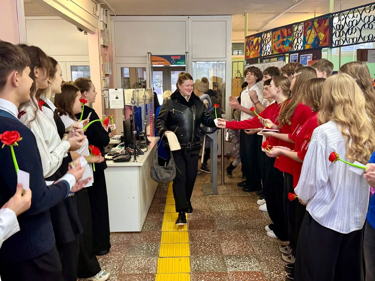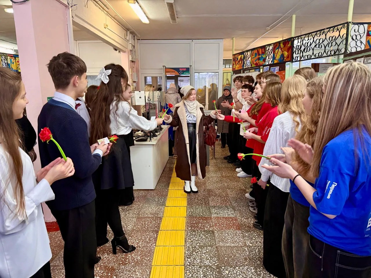 Утро в МБОУ " Лицей №5" началось с праздничных поздравлений женщин: старшеклассники , активисты "Движения Первых" под руководством советника директора организовали акцию " Тепло весеннего сердца" ,встречали учителей с музыкой, подарками и поздравляли своих педагогов, говорили им приятные слова.
