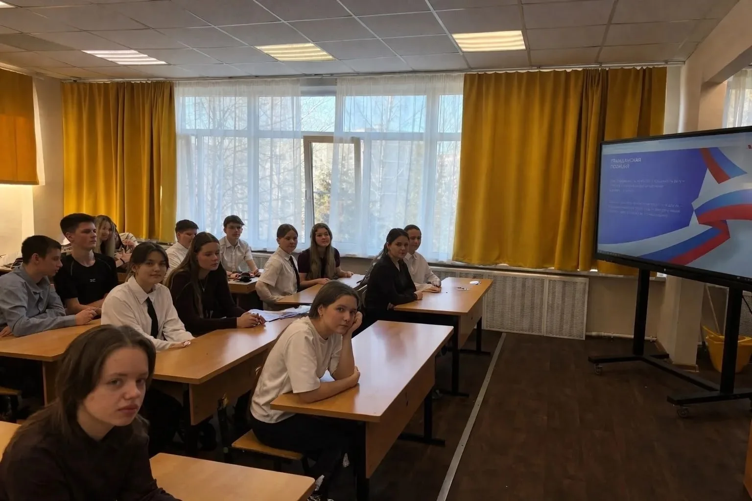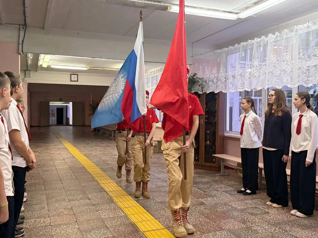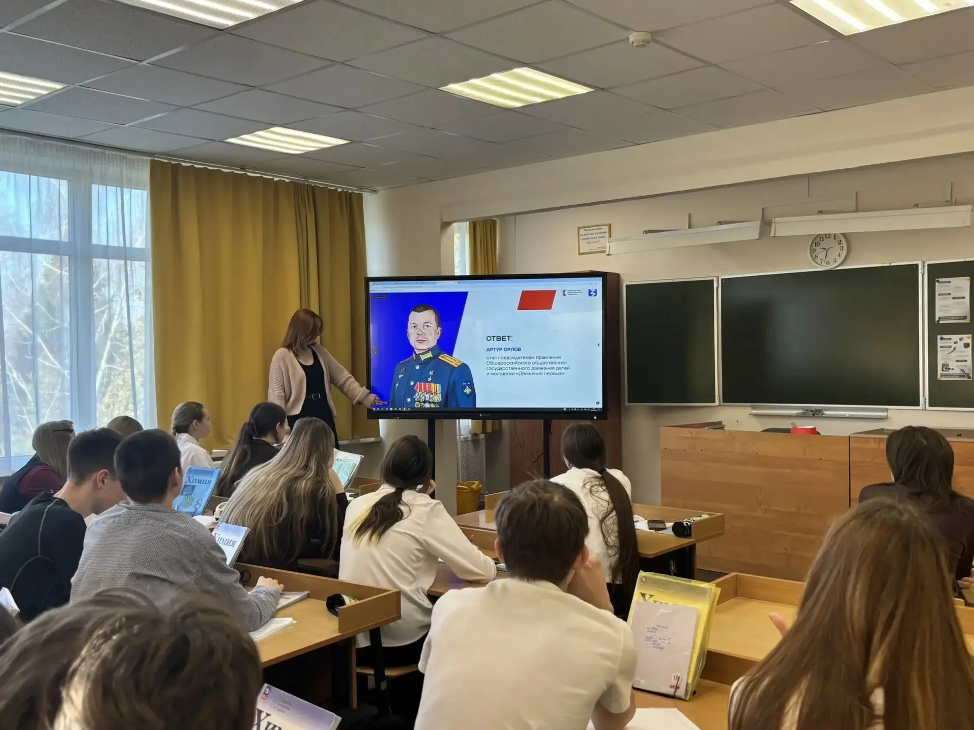 Занятие из цикла «Разговоры о важном» было на тему «Герой из соседнего двора». Ученики обсуждали, что героизм проявляется не только в масштабных сражениях. Быть защитником Отечества — значит уметь брать на себя ответственность, приходить на помощь, заботиться о близких и быть честным перед собой и другими.