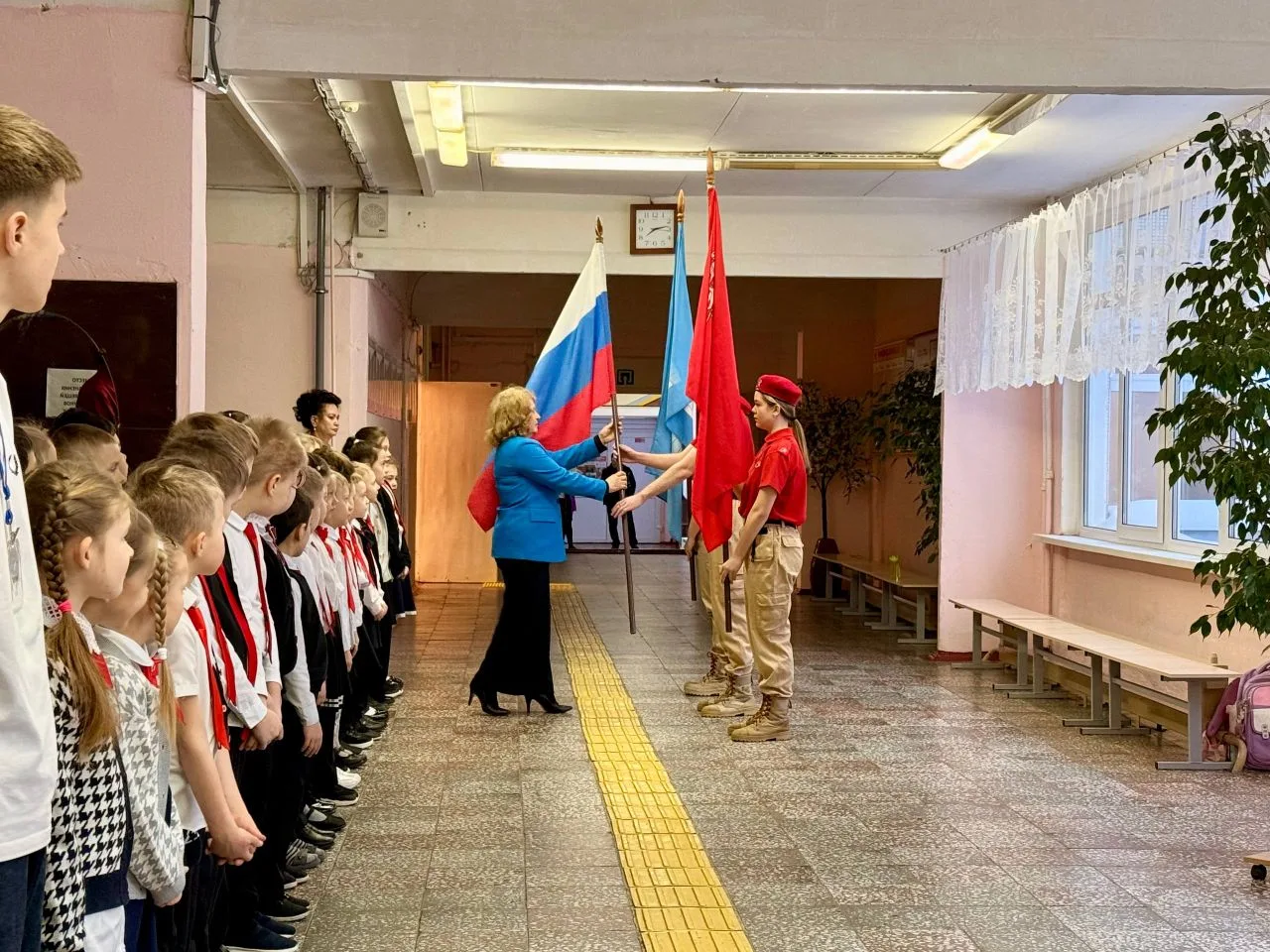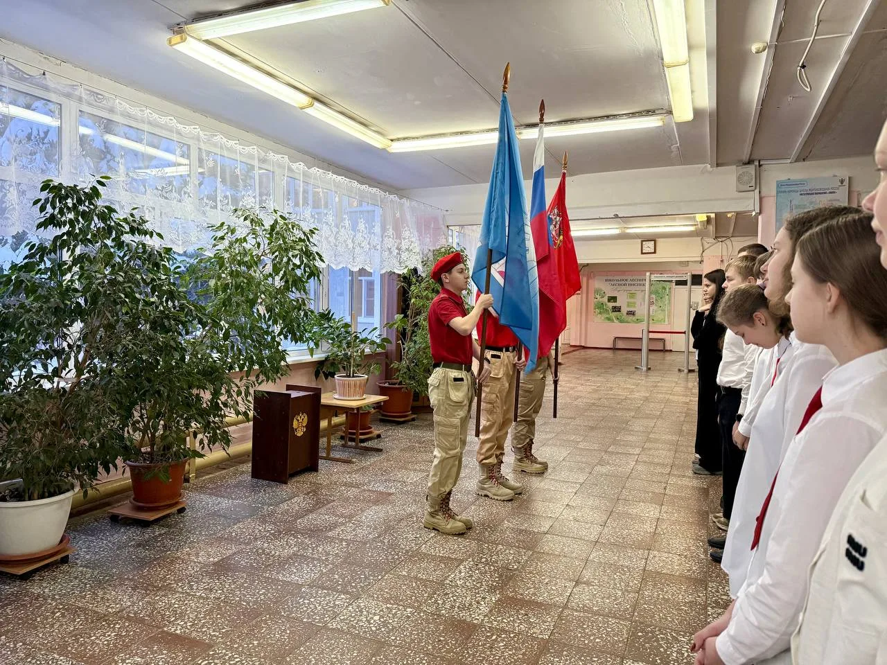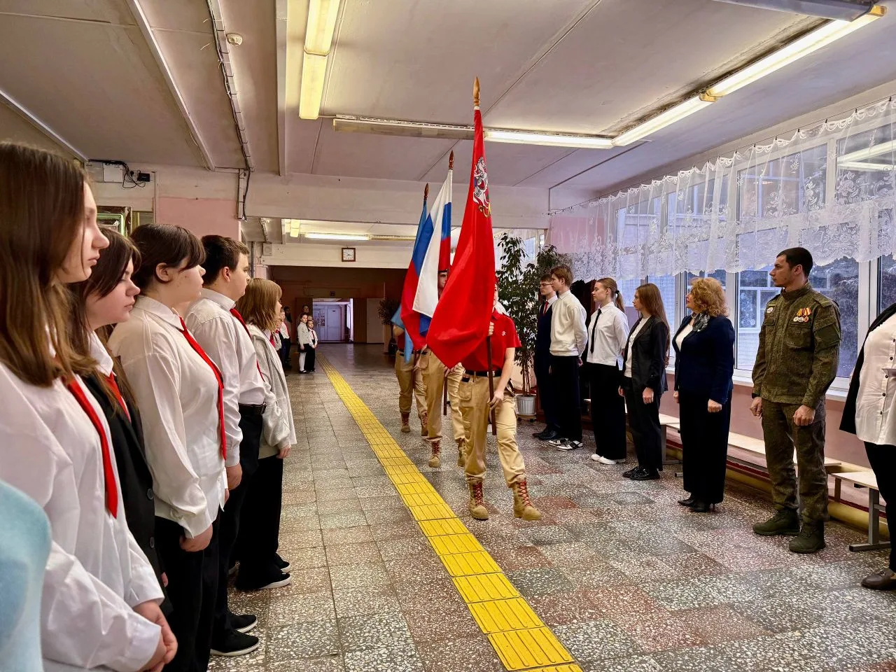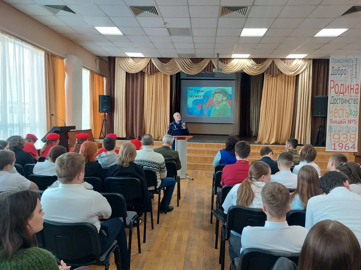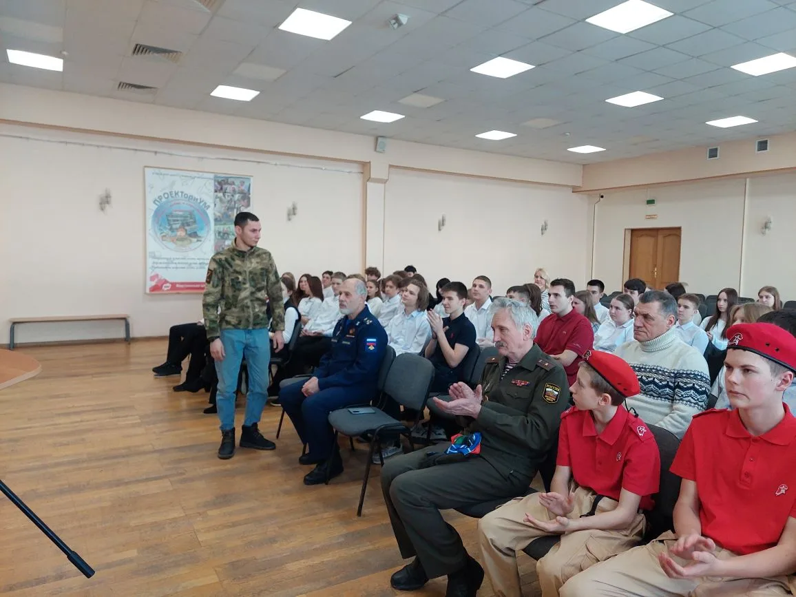 С приветственным словом к учащимся обратились директор школы Галина Владимировна Шишкова и Михаил Минаев, руководитель Зарайского отделения Ассоциации ветеранов СВО Подмосковья. .