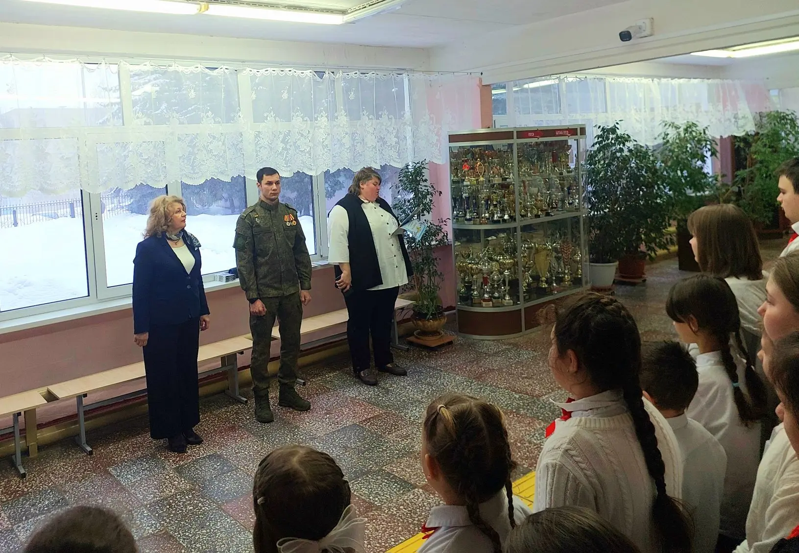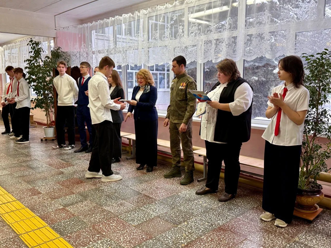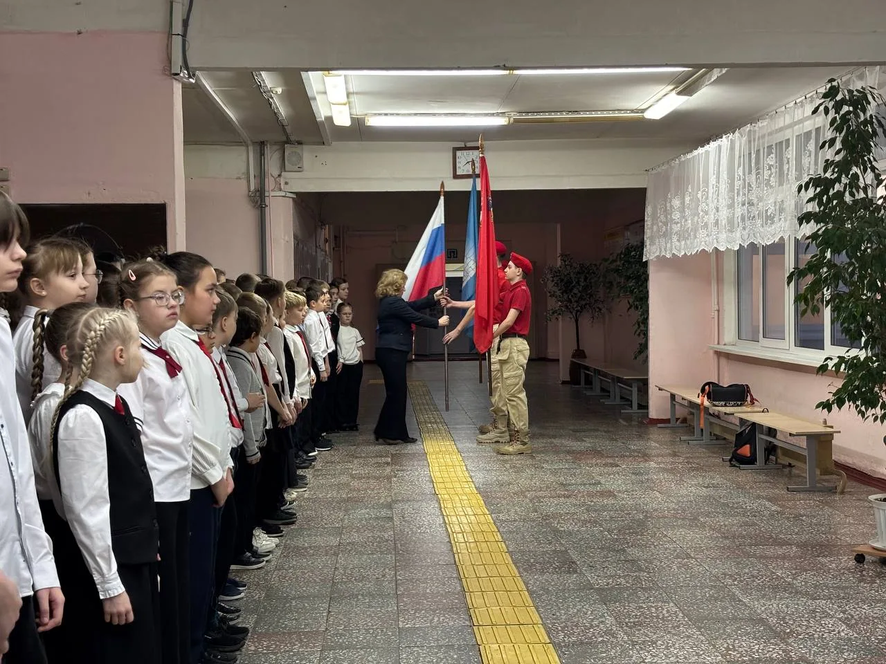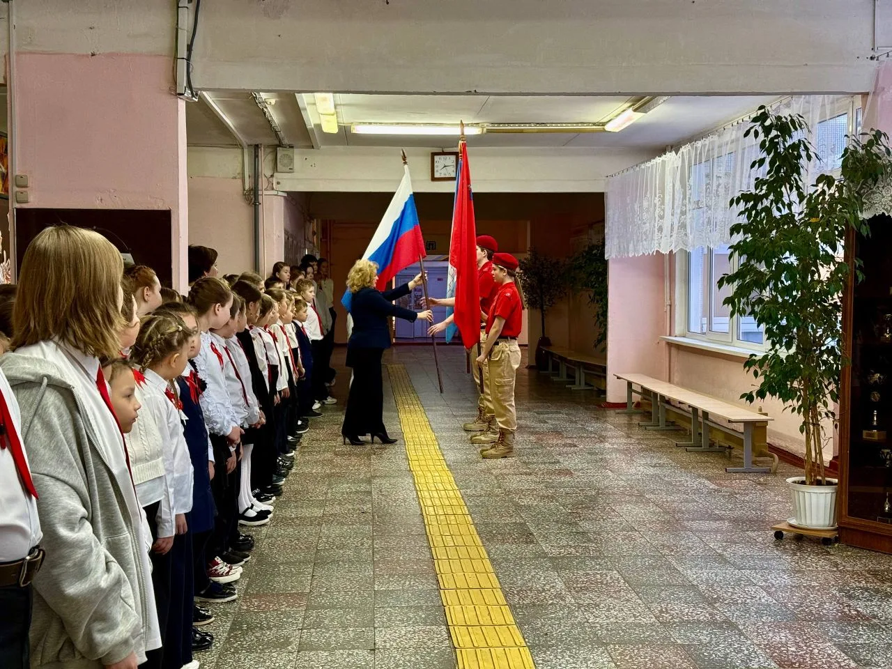 С приветственным словом к учащимся обратились директор школы Галина Владимировна Шишкова и Михаил Минаев, руководитель Зарайского отделения Ассоциации ветеранов СВО Подмосковья. .