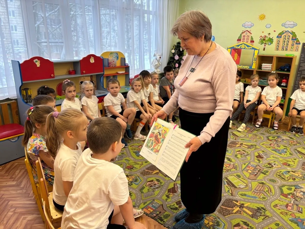 Беседу с детьми в детском саду, а также всю духовно-просветительскую работу провела православный педагог Никольского собора Людмила Валентиновна К. В доступной и тёплой форме она рассказала ребятам историю Рождества Христова, познакомила с основными символами праздника и его значением для каждого из нас, поговорила о добре, милосердии и любви к ближнему.