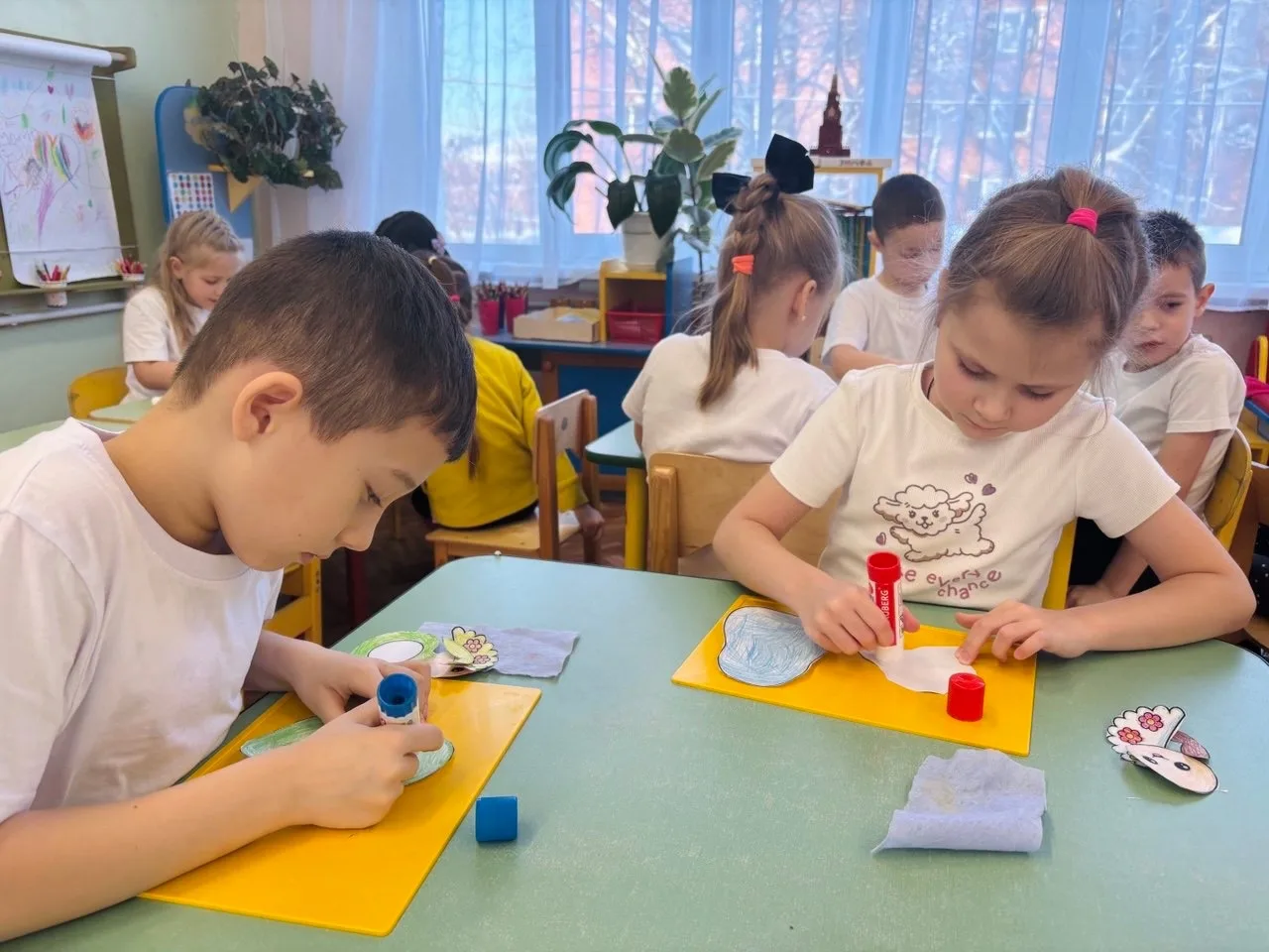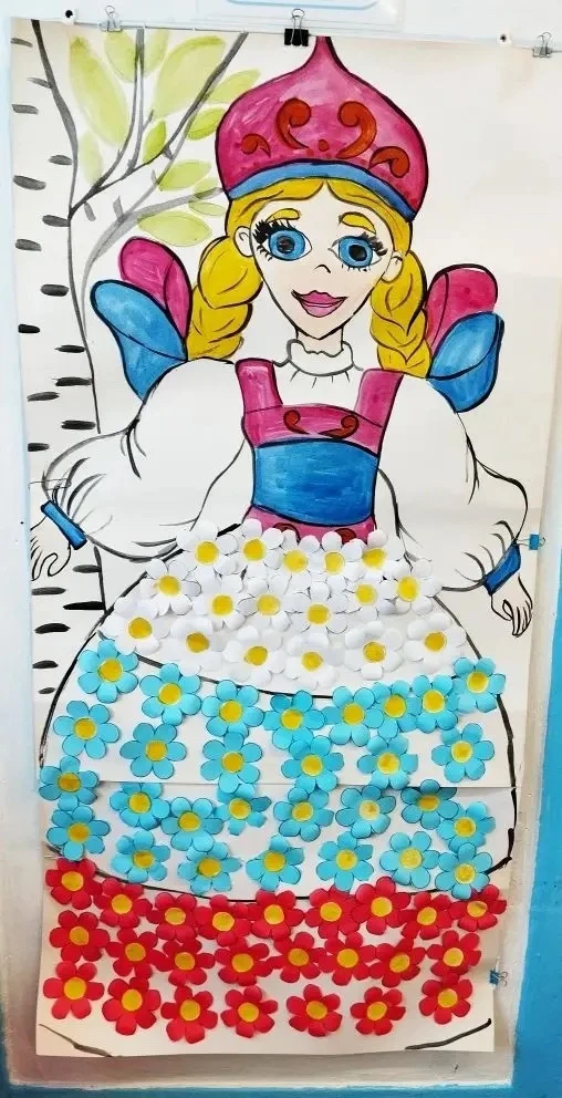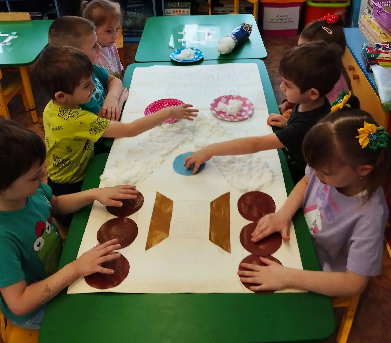С интересом выполнили коллективную работу "Моя Россия", аппликацию
