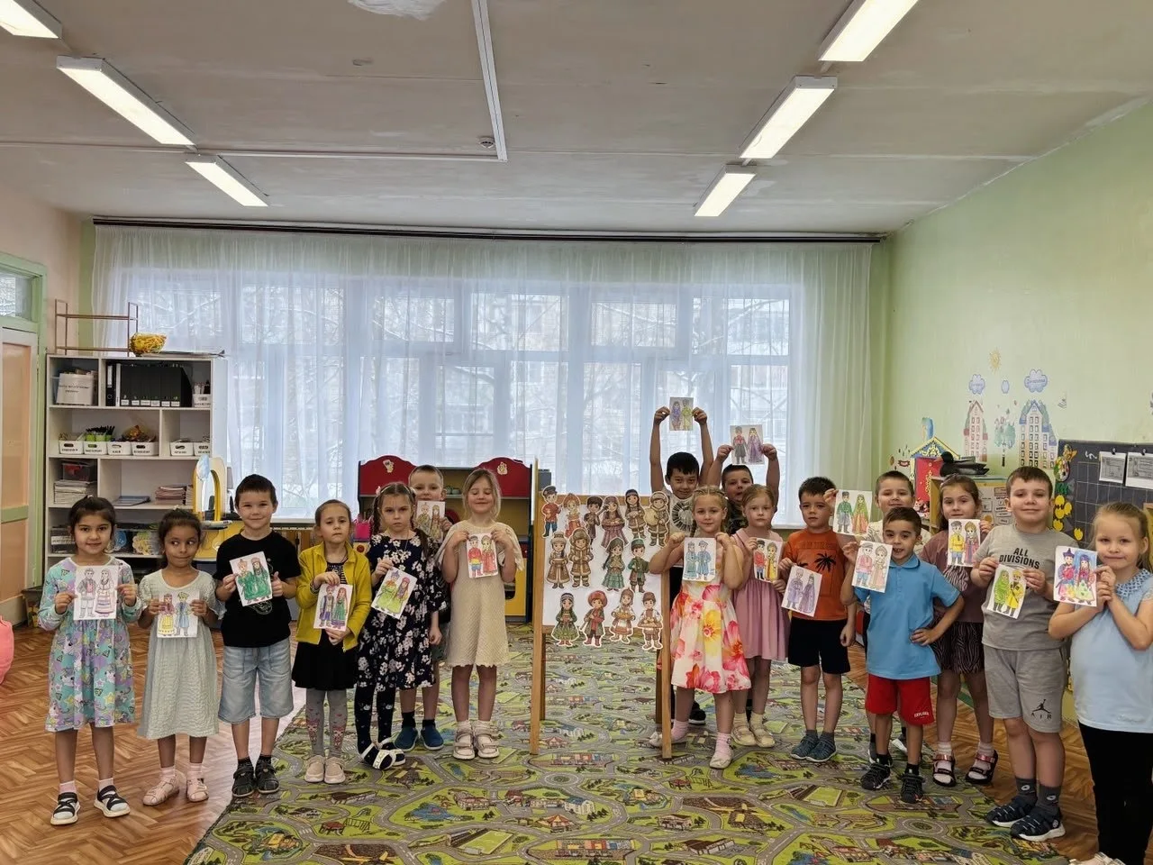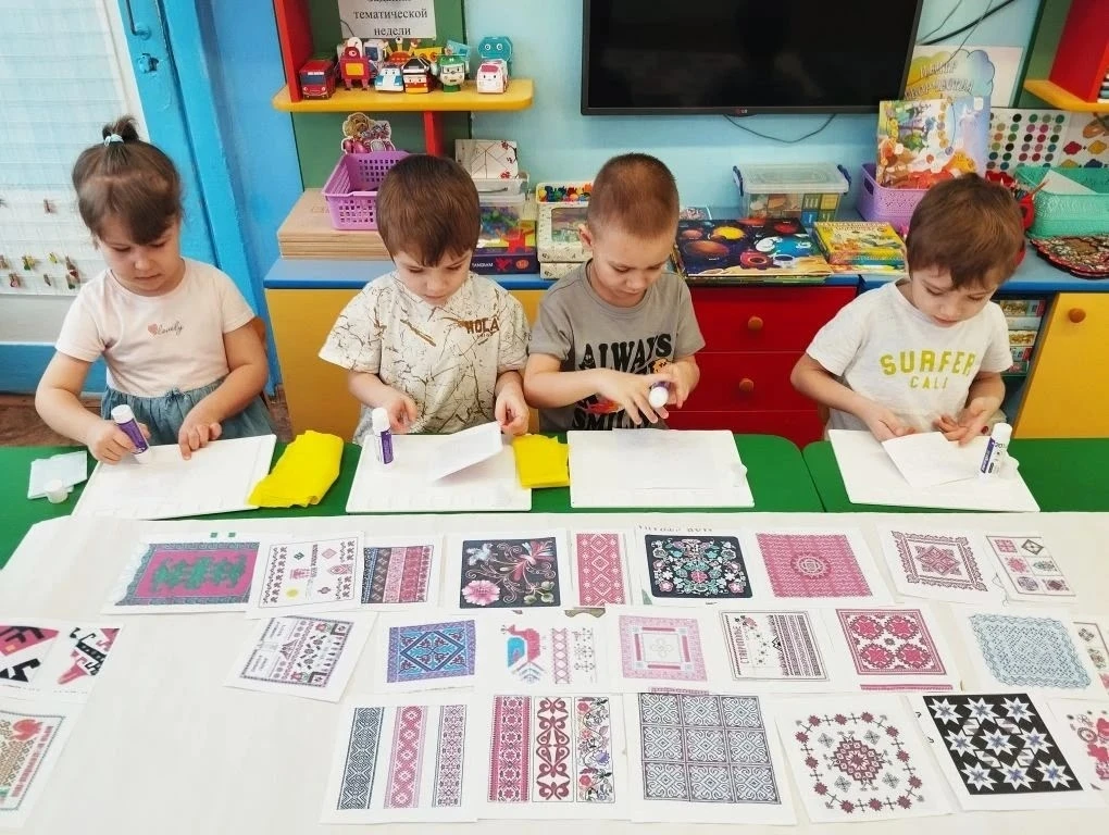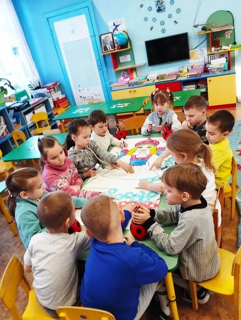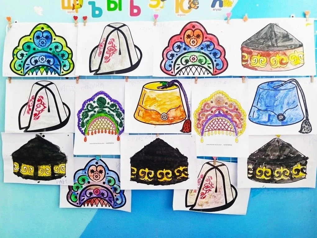 С интересом дошкольники занимались творческой работой, раскрашивая "Головные уборы", и сделав коллективную работу "Одеяло".