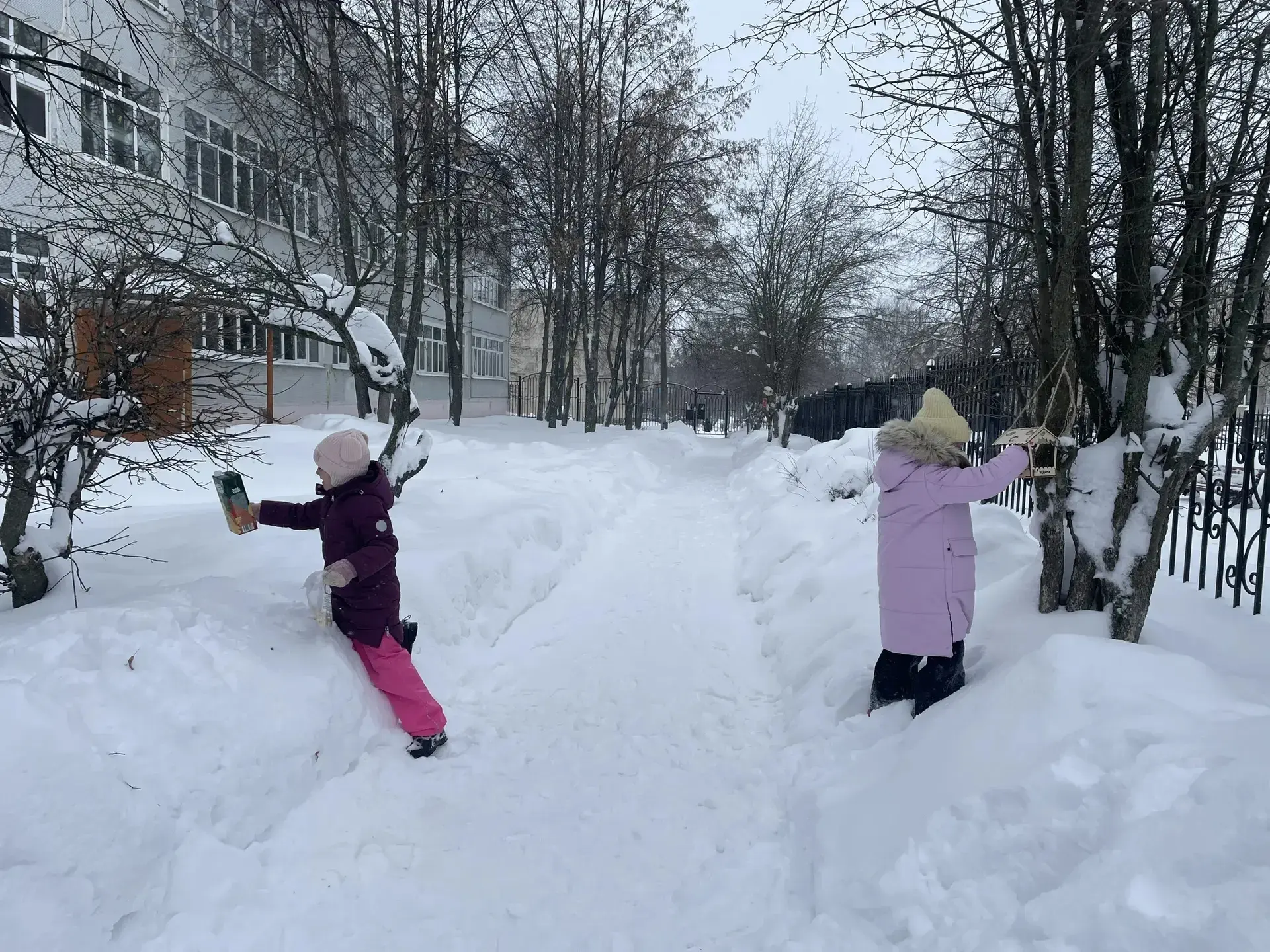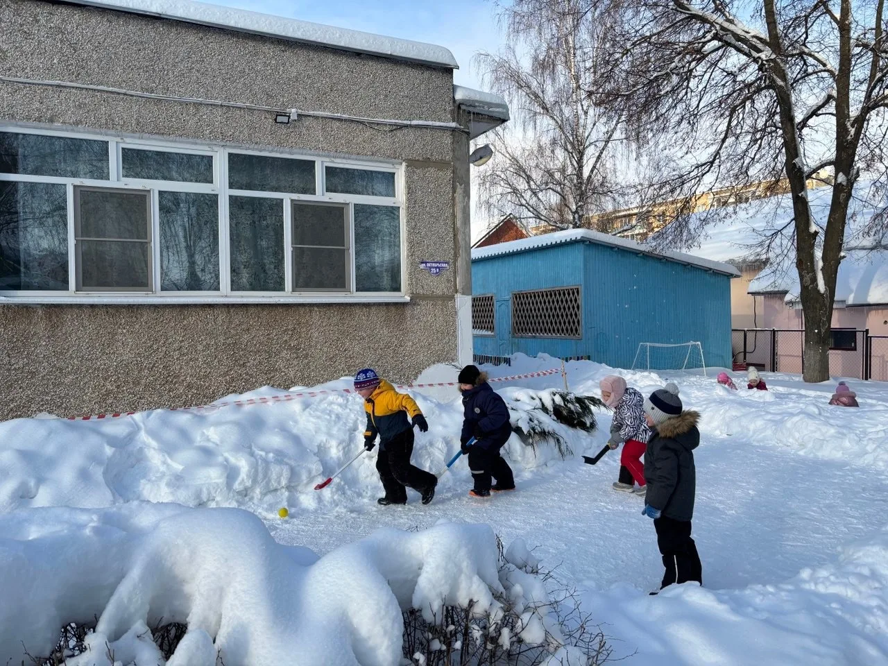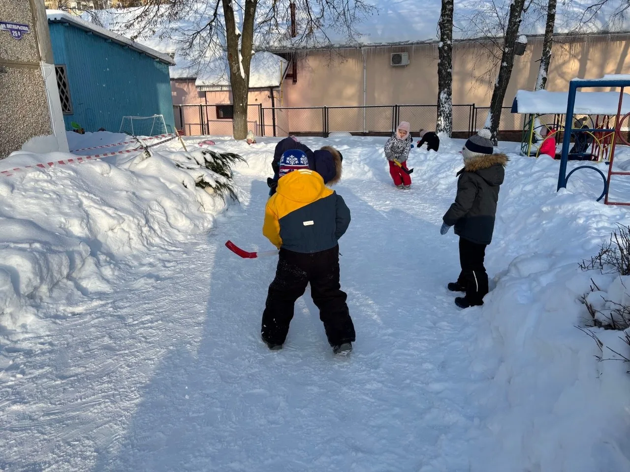 На улице играли в подвижные игры, хоккей, катали друг друга на санках.