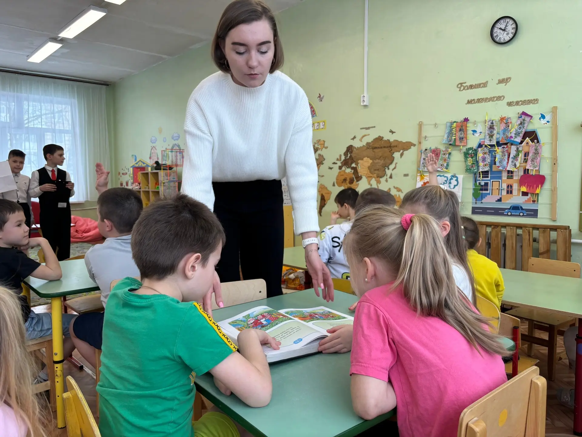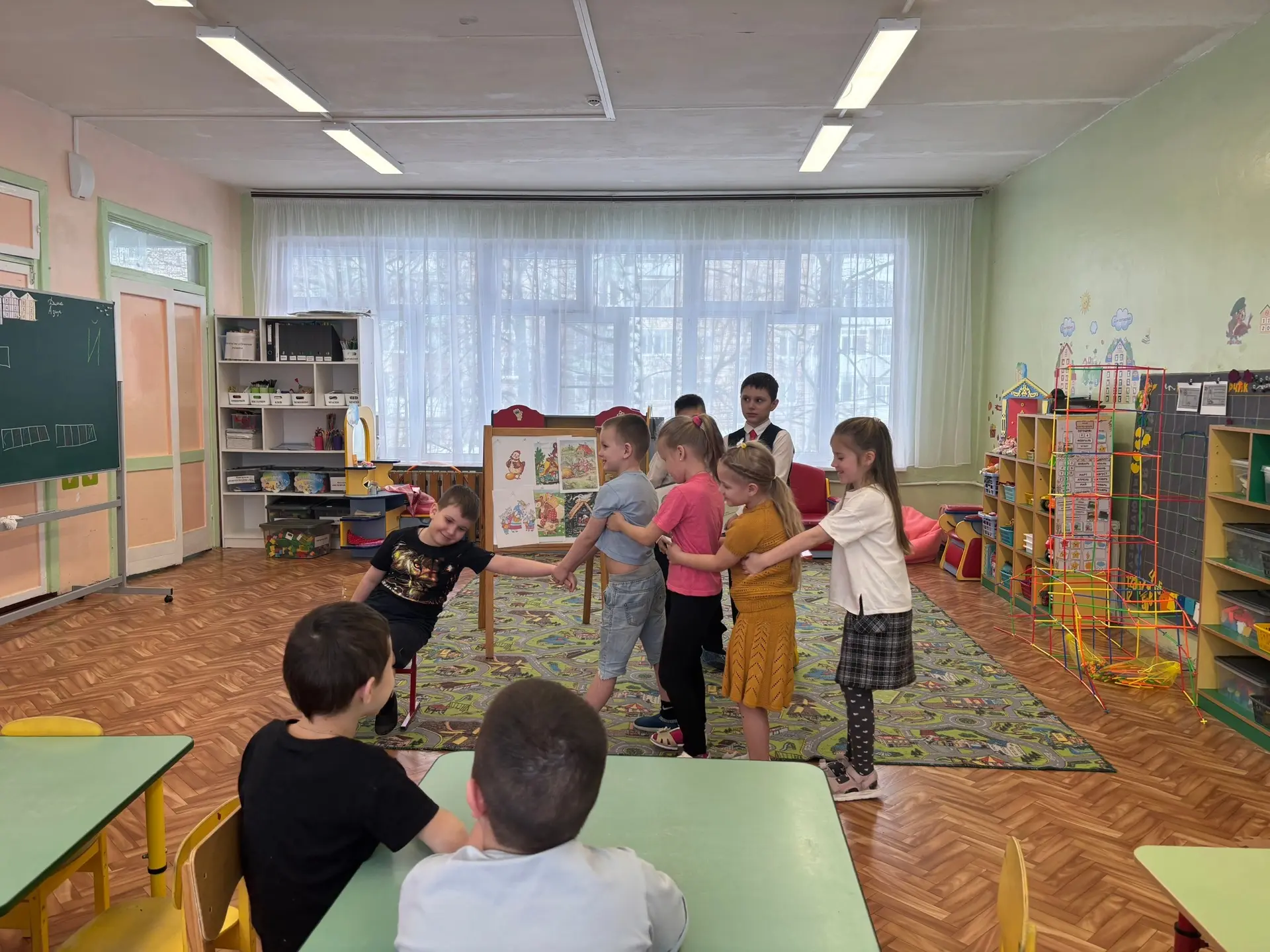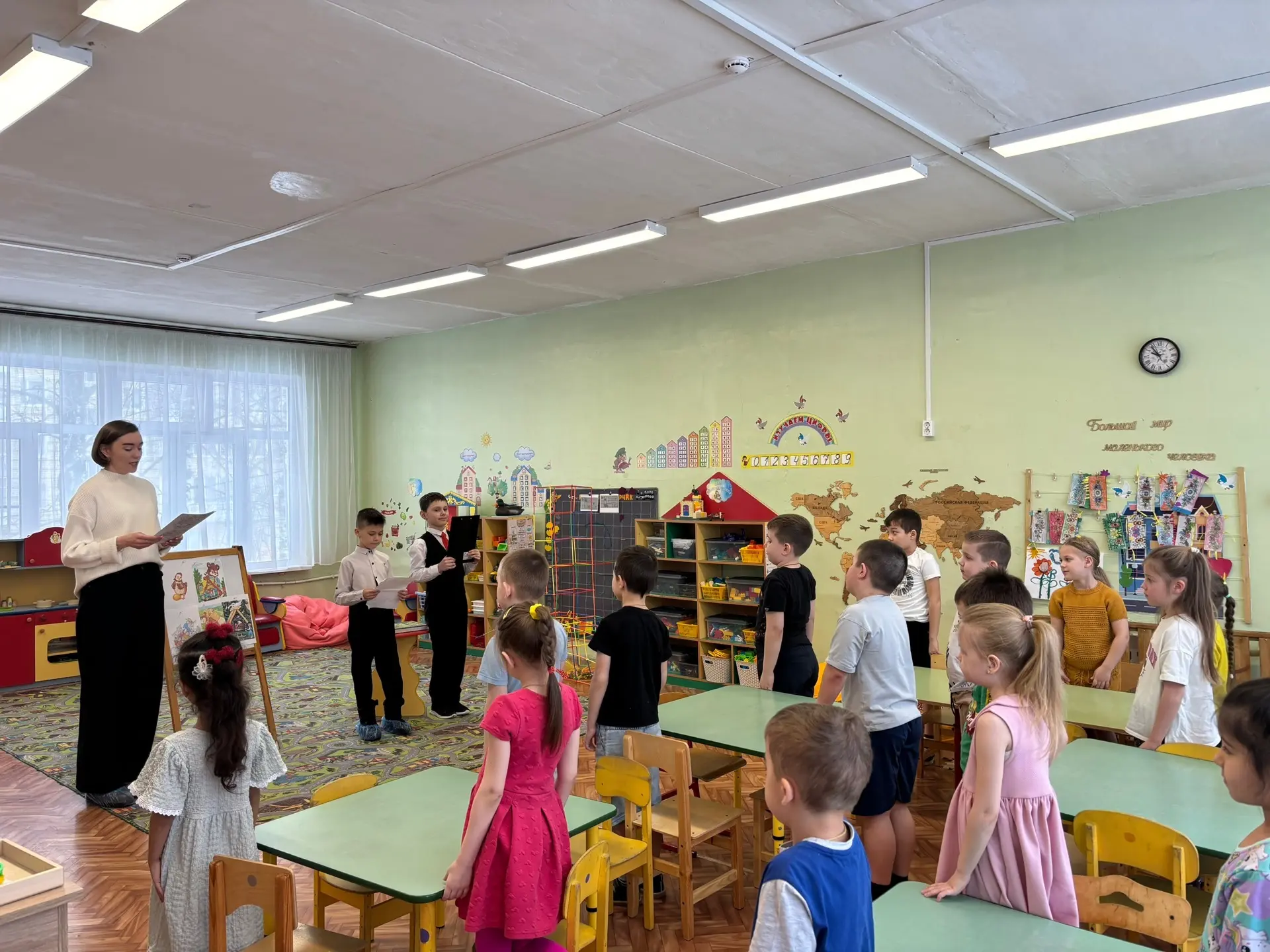 В гости к воспитанникам подготовительной группы пришла классный руководитель Иванищева Ж.Г. Вместе с ребятами они отправились в путешествие по стране «Мир сказок» 🏰: вспоминали любимых героев, отвечали на вопросы и выполняли интересные задания 🎭🧩