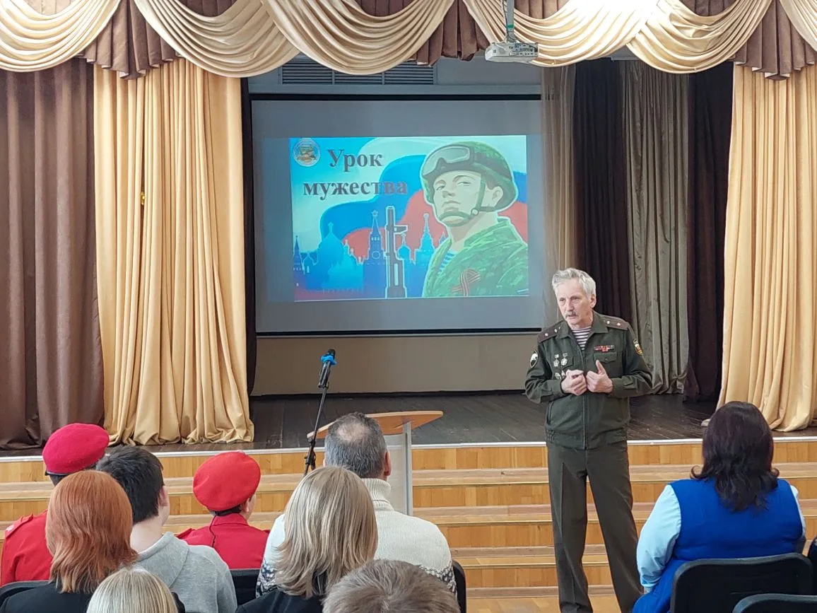 Урок провел гвардии-полковник в отставке , ветеран СВО, социальный координатор и руководитель проекта " Школа патриотического воспитания Вячеслав Шевяков.