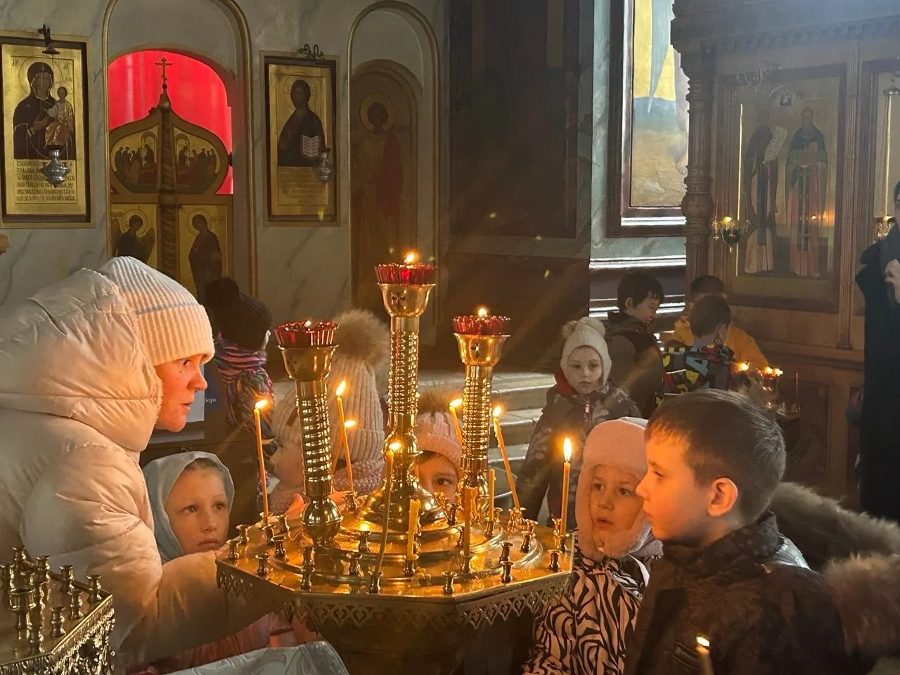 Продолжением встречи стало посещение храма Иоанна Предтечи. С особым трепетом дети возложили подарки Христу к вертепу. Эти дары будут переданы детям из малообеспеченных семей и нашим воинам на фронте, став символом искренней детской заботы и сострадания.