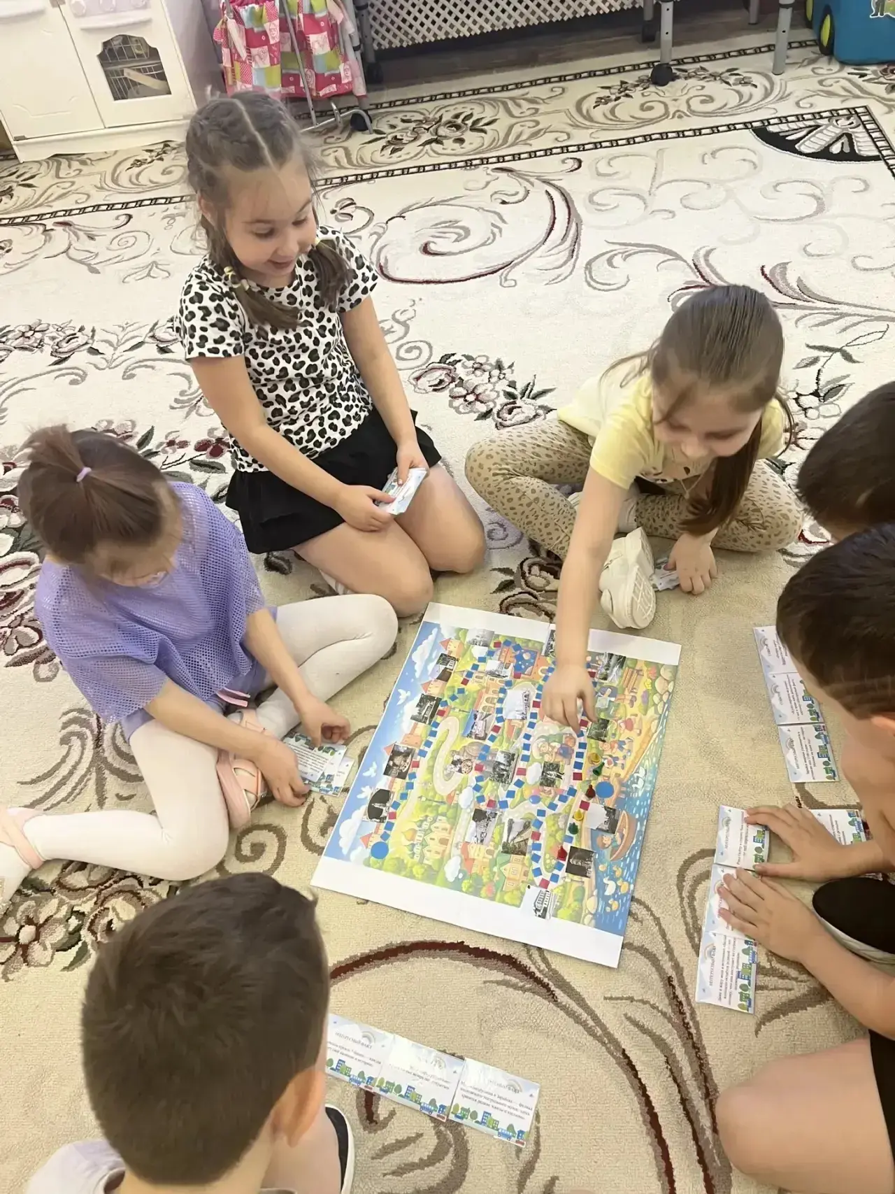В рамках реализации проекта «Предшкола: стандарт детского сада» на тематической неделе «Каникулярная неделя: находки вашего ДО (ступеньки к школе)» воспитанники подготовительной к школе группы «Солнышко», МБОУ «Лицей 5» дошкольное отделение ул. Ленинская, д.34 г. Зарайск, создали настольную игру-ходилку, посвящённую родному городу. Поиграли в неё сами, а затем в рамках реализации проекта «Открываем мир по почте или посткроссинг в дошкольном отделении» отправили новым друзьям из детского сада в Ставропольском крае. Цель: познакомить сверстников из другого региона с г. Зарайском через игру.