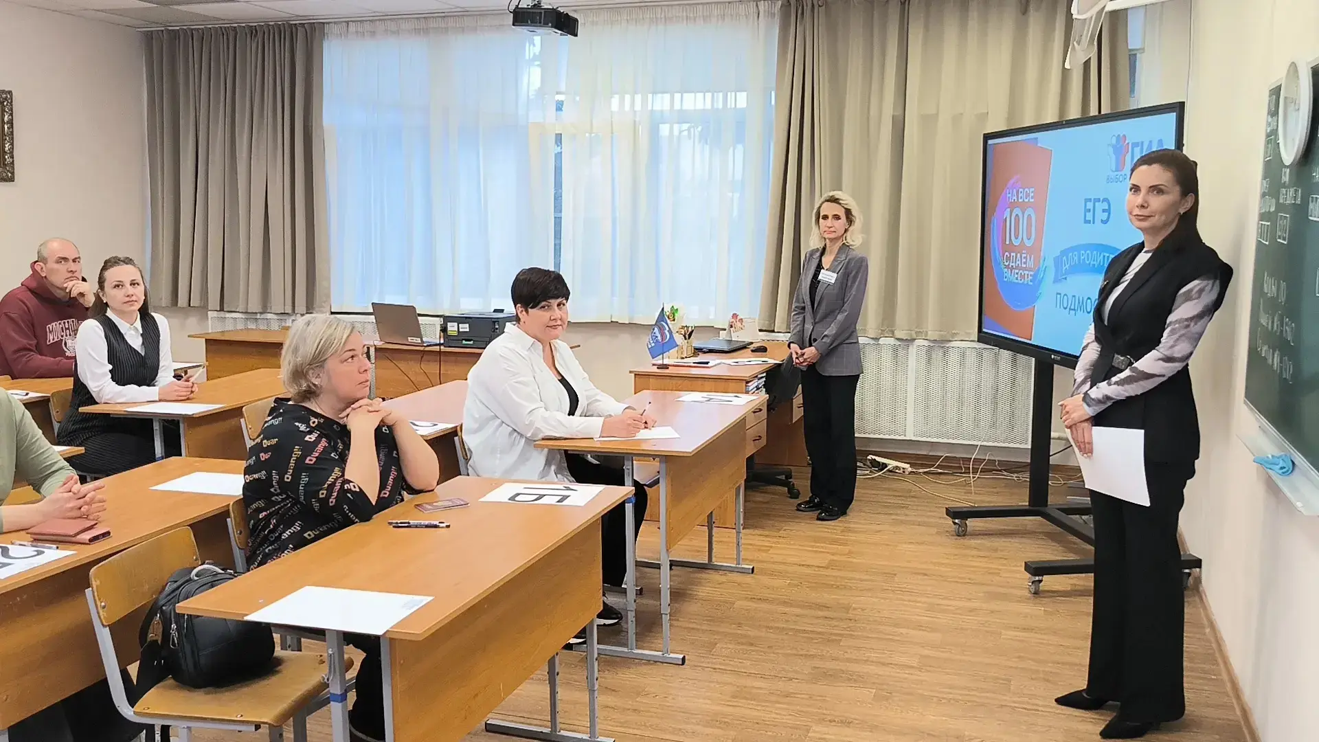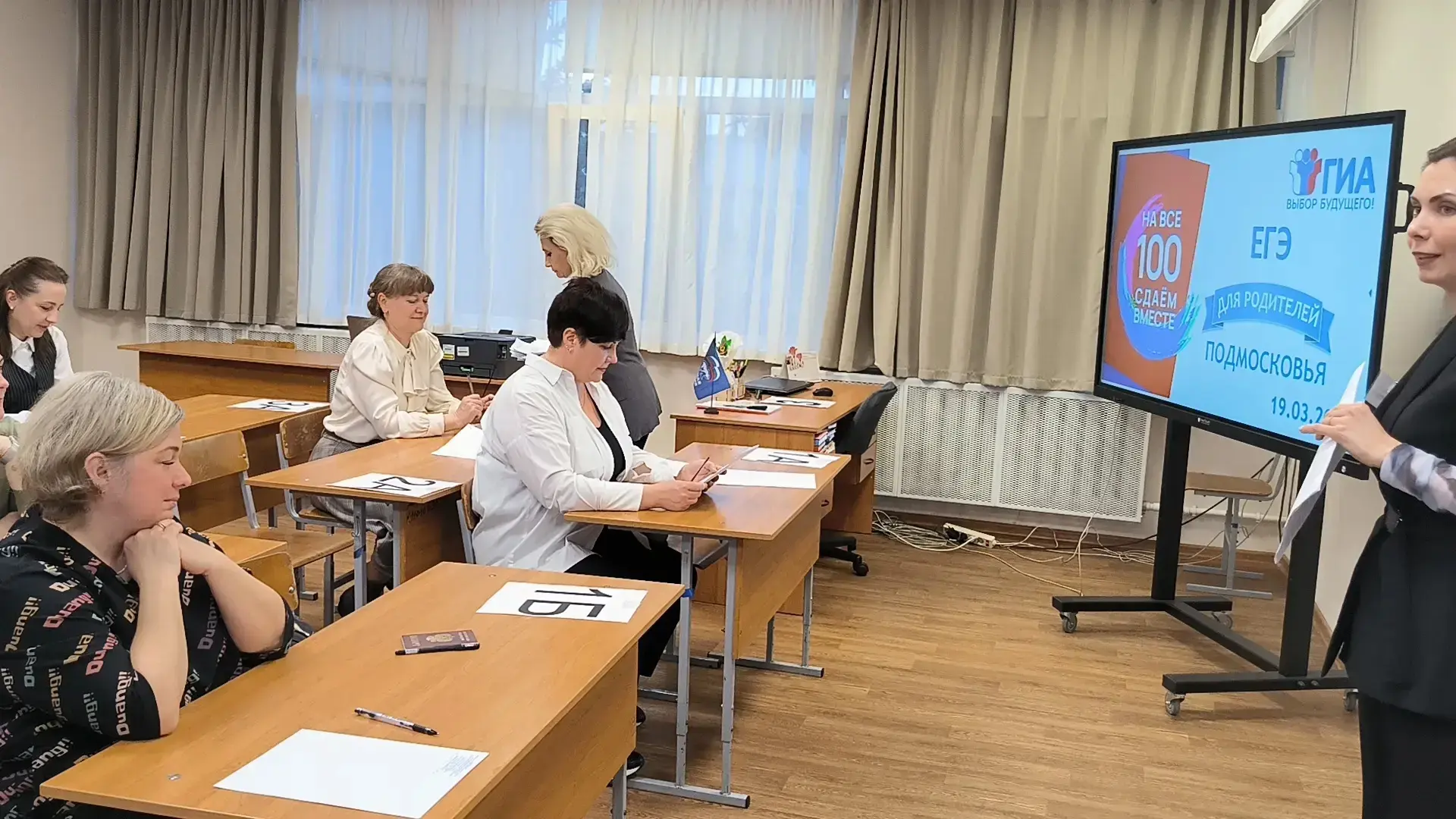 Взрослые прошли всю процедуру экзамена от начала до конца: контроль на входе, регистрацию, рассадку в аудиториях и инструктаж. Им рассказали, как выглядят экзаменационные материалы и как правильно заполнять бланки ответов. Для родителей был организован сокращенный вариант экзаменационной работы по русскому языку, чтобы они могли оценить уровень заданий.