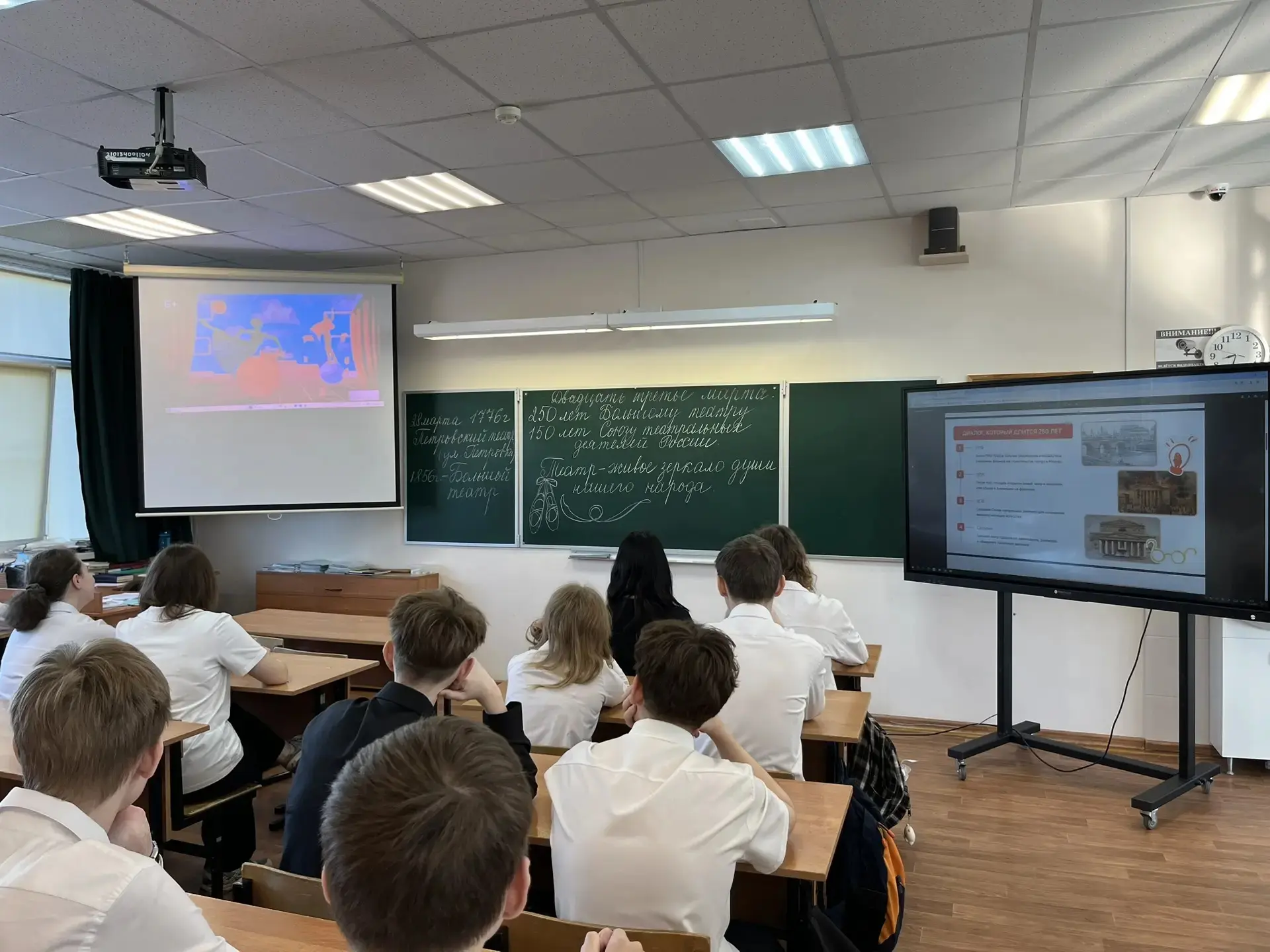 23 марта в МБОУ "Лицей №5" прошло занятие из цикла «Разговоры о важном», посвящённое двум знаменательным юбилеям: 250-летию Большого театра и 150-летию Союза театральных деятелей России .