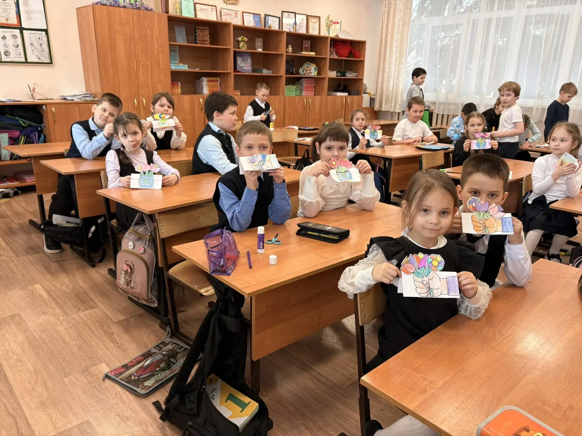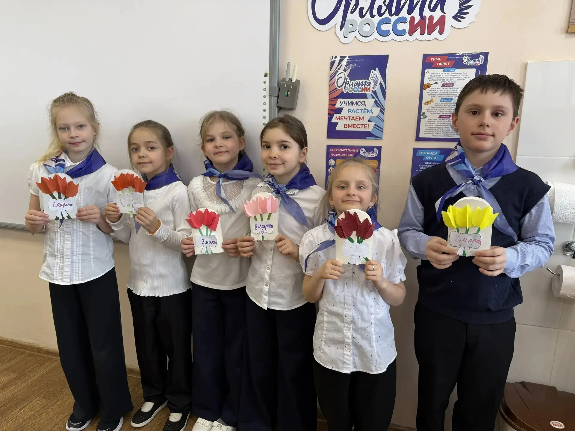 🇷🇺 Орлята России МБОУ "Лицей №5" приняли участие в активности "Букет для любимых" и подготовили особенный сюрприз для своих мам и бабушек накануне праздника весны — Международного женского дня 8 марта. Дети сделали своими руками оригинальные букеты. Каждое изделие было создано с любовью и теплотой детских сердец ❤️.