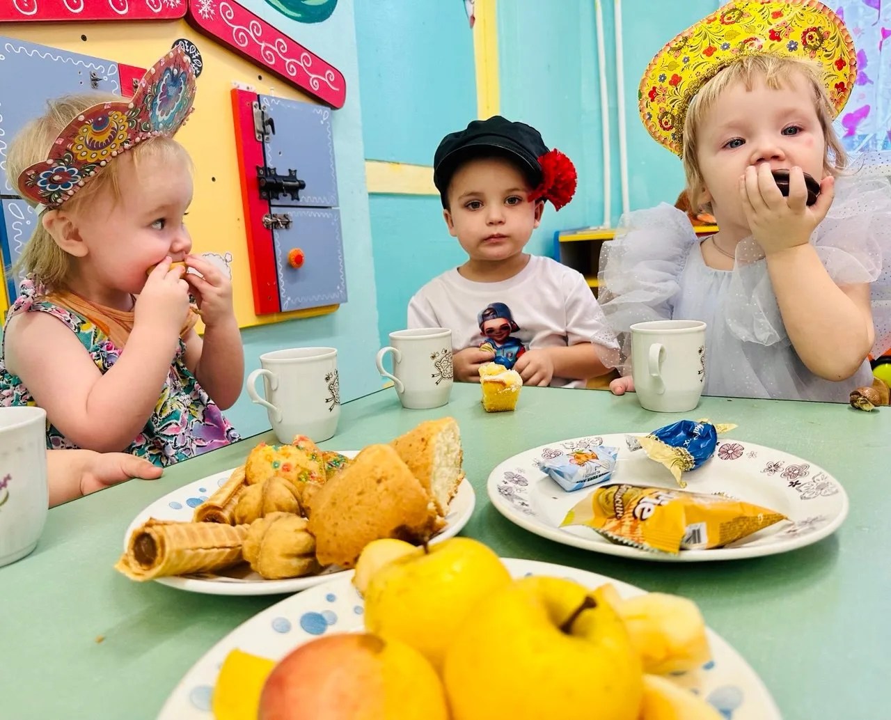 И мы сегодня колядовали, водили хороводы, отгадывали загадки, пели красивые песни. А в группах ребята нас встречали очень тепло и гостеприимно и одаривали колядовщиков, как и в старину разными вкусняшками.
