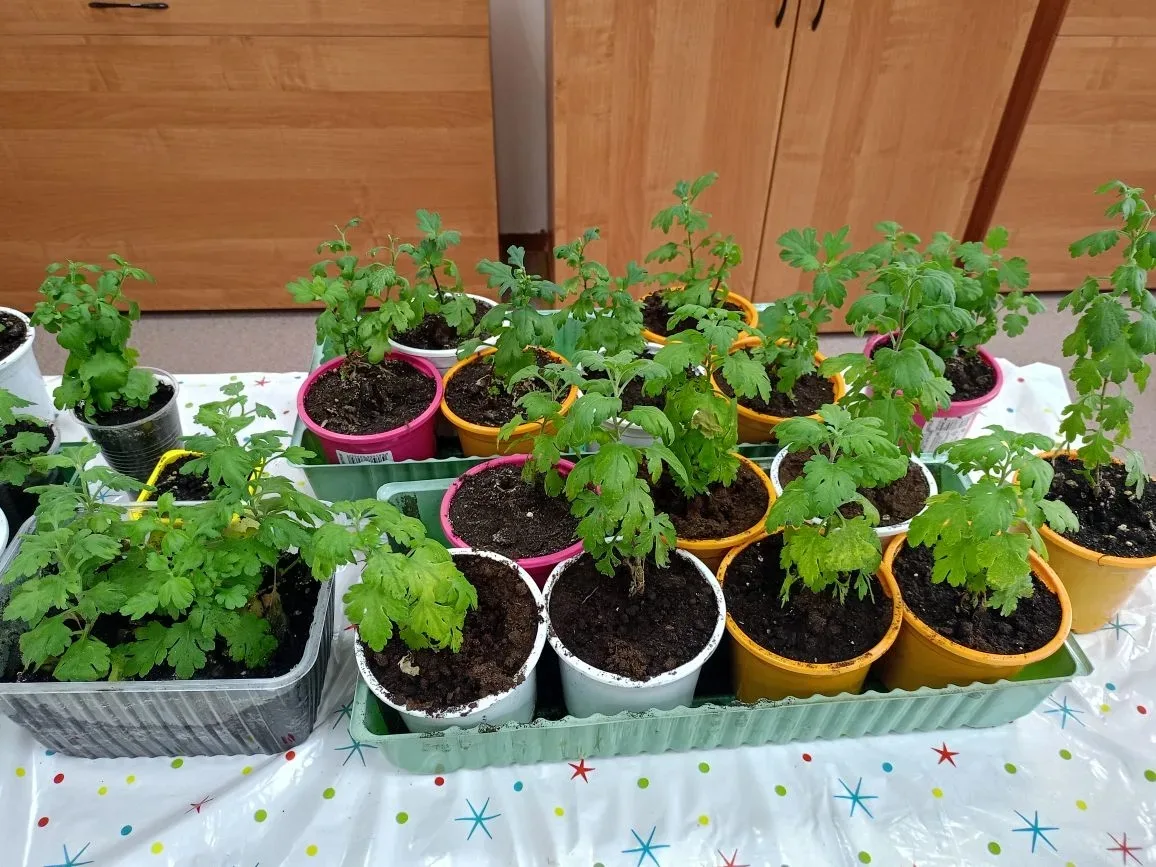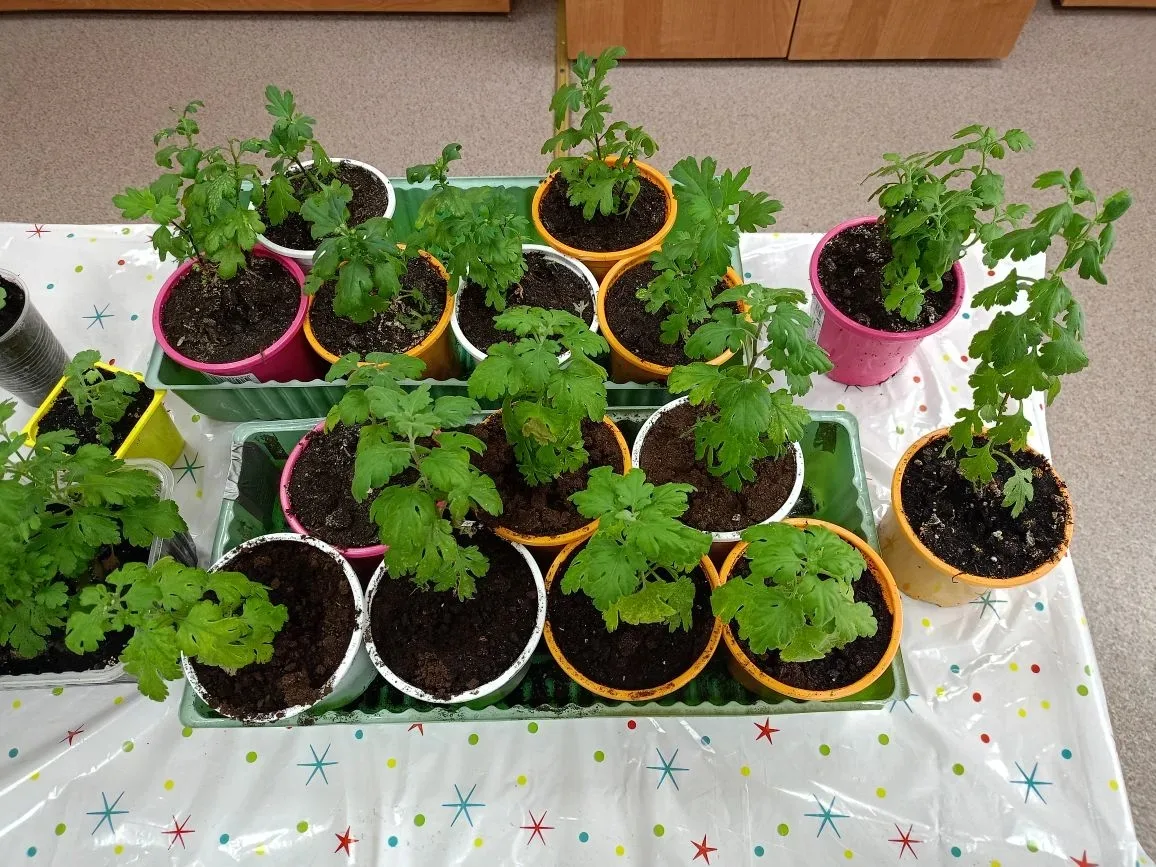 Не забывали и про уход растений "Лаванда" и "Хризантема", "Мята", которые осенью сажали способом черенкования и делением куста.