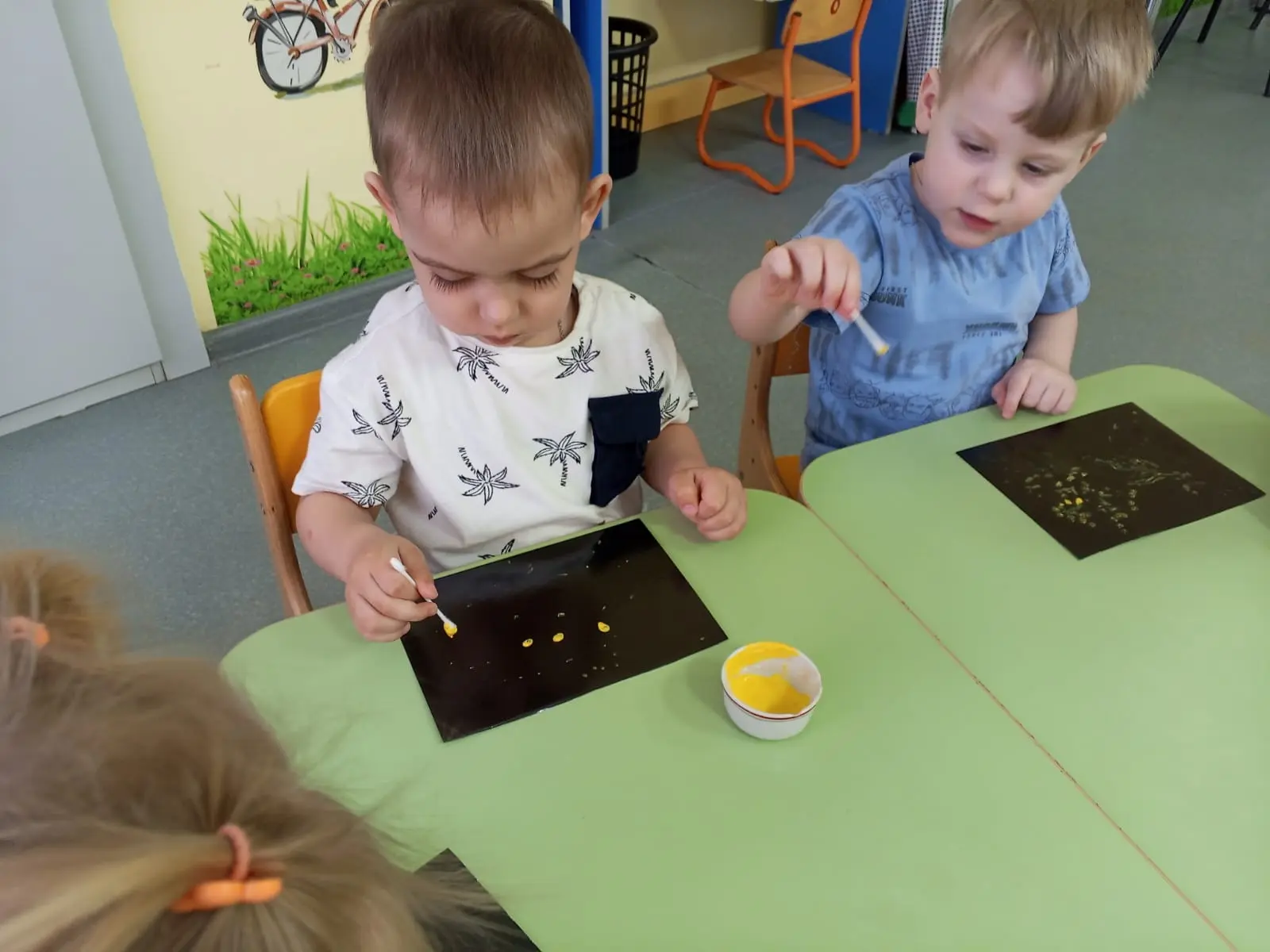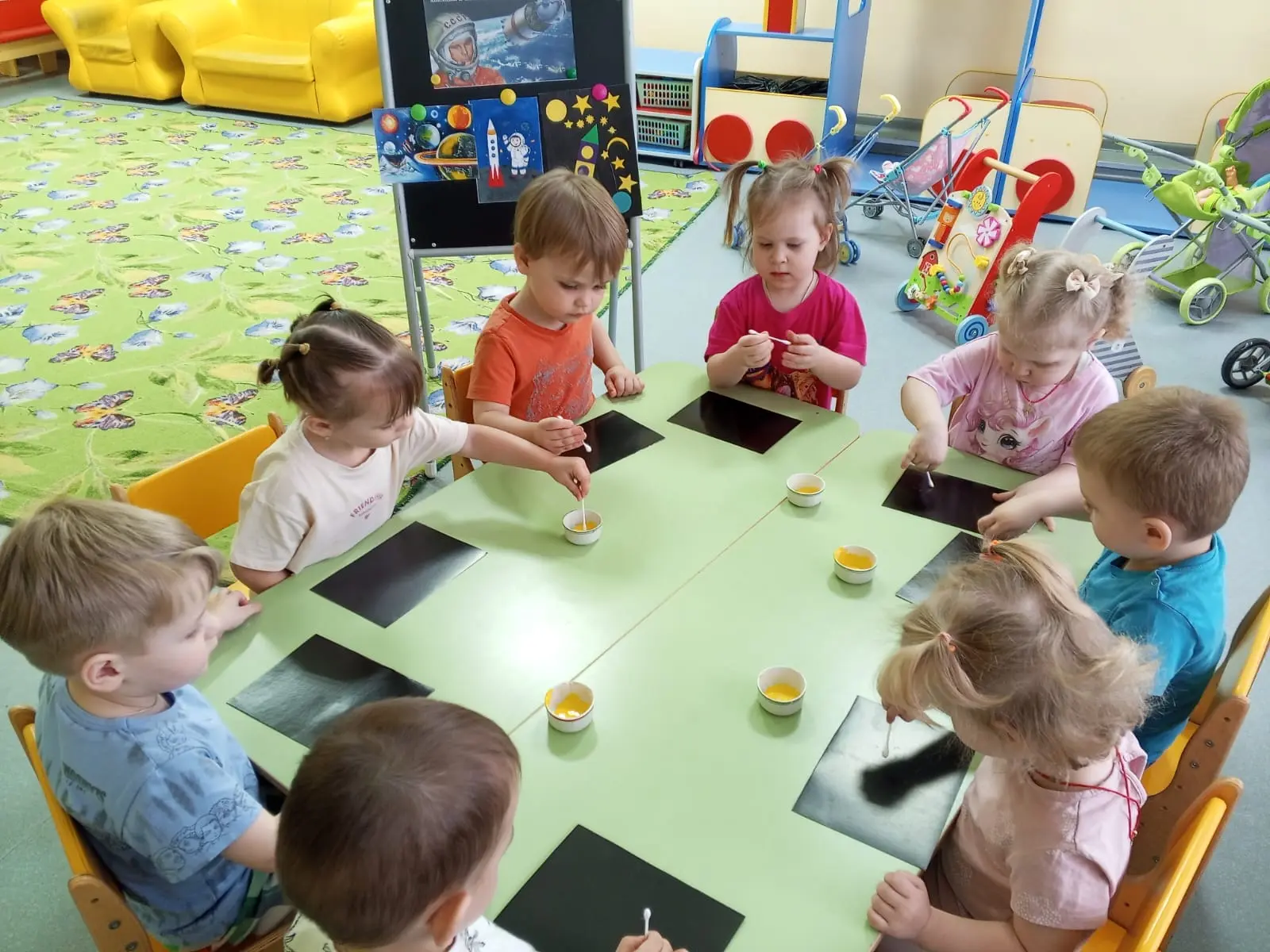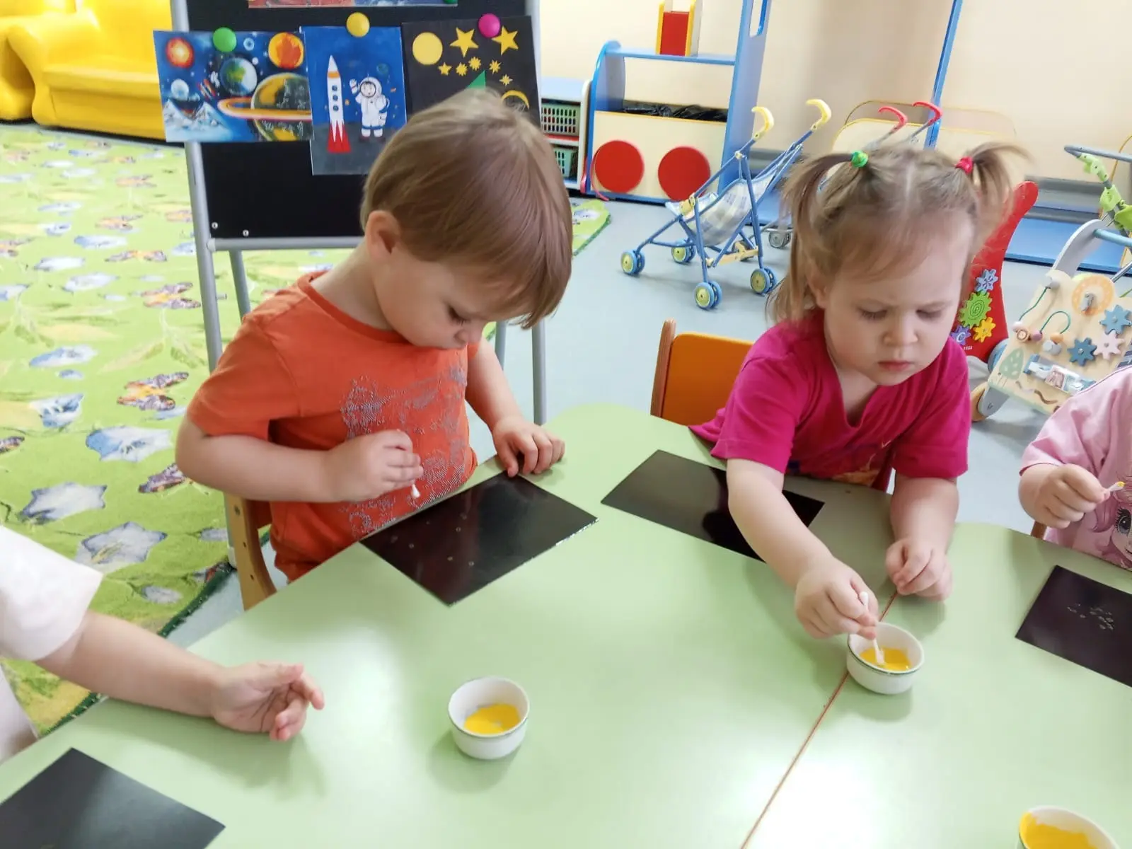 🎨 **Рисовали звёзды ватными палочками** — с помощью необычной техники тычка у каждого получилась своя яркая звёздная вселенная. Это не только весело, но и отлично развивает мелкую моторику!