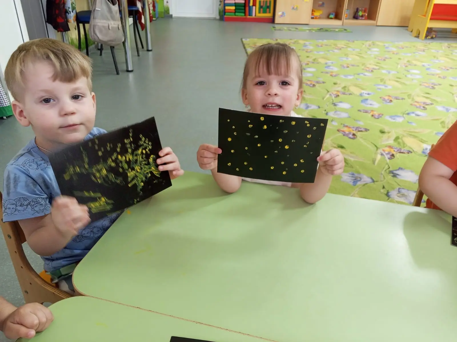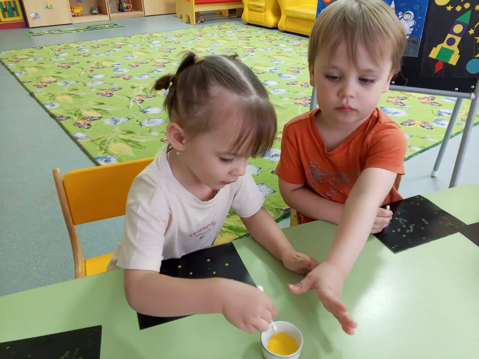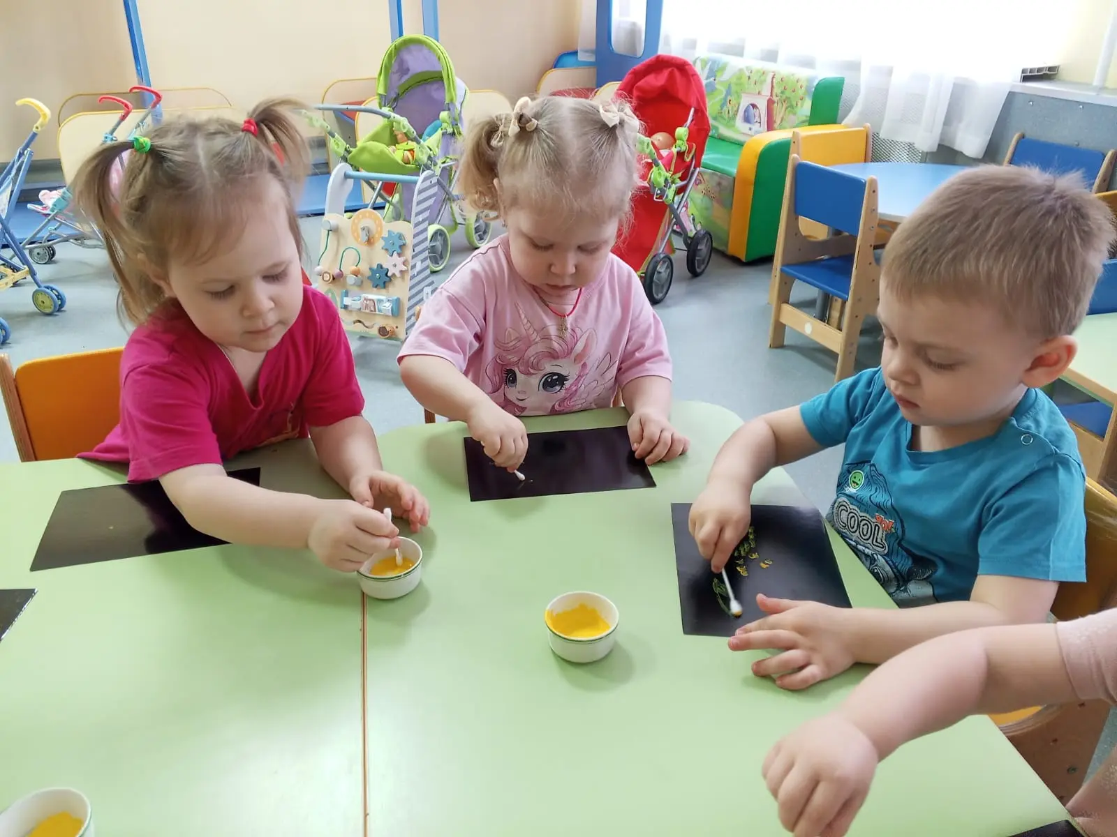 🎨 **Рисовали звёзды ватными палочками** — с помощью необычной техники тычка у каждого получилась своя яркая звёздная вселенная. Это не только весело, но и отлично развивает мелкую моторику!