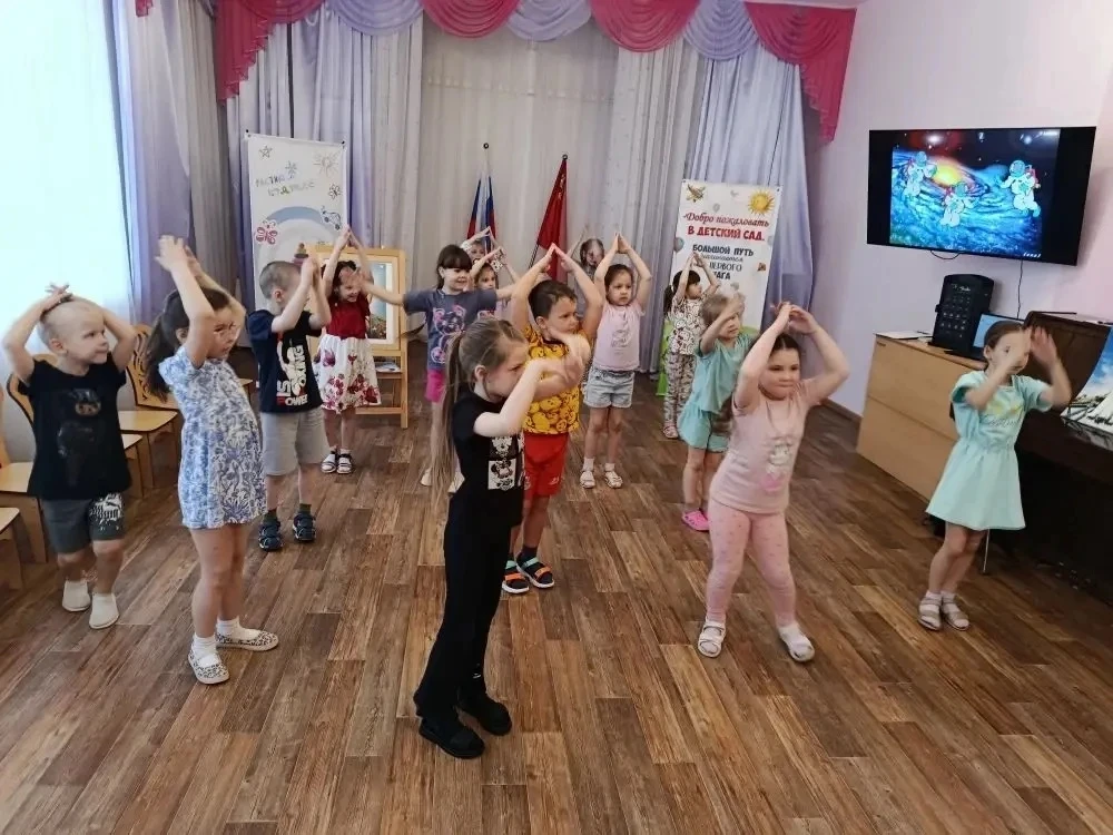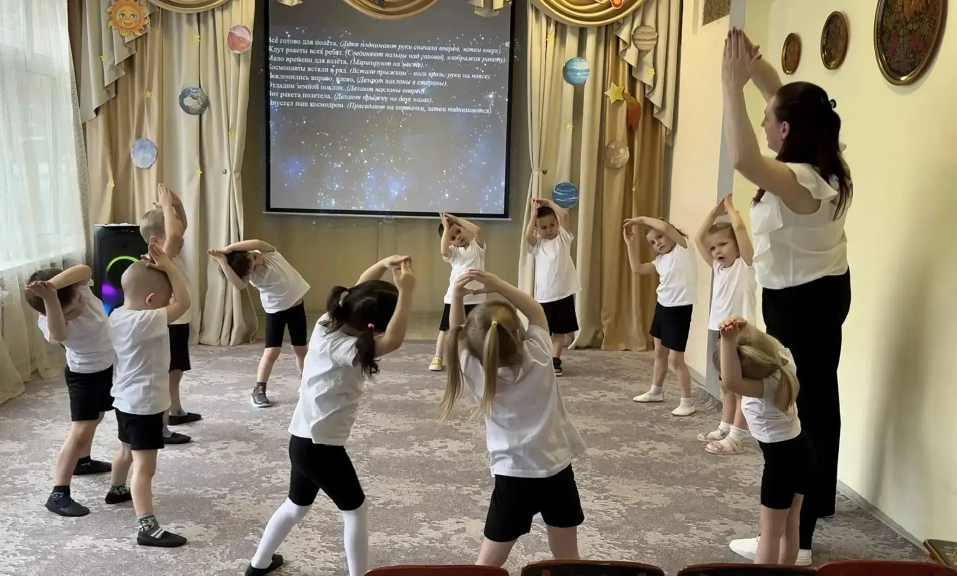 Дошколята превратились в отважных космонавтов. Они сделали бодрую космическую зарядку, чтобы набраться сил перед полётом. А потом начались самые интересные приключения: дети играли в весёлые игры, «летали» от планеты к планете, выполняя разные задания, и разгадывали космические загадки.
