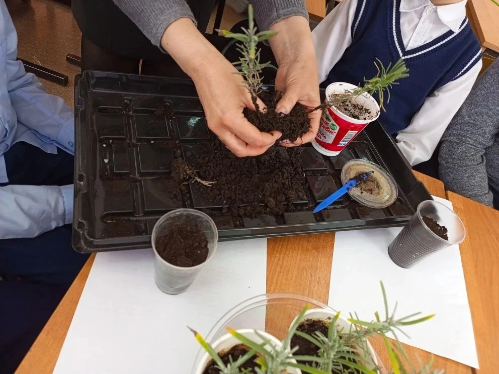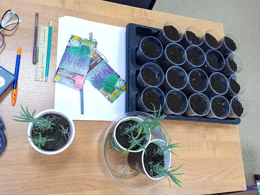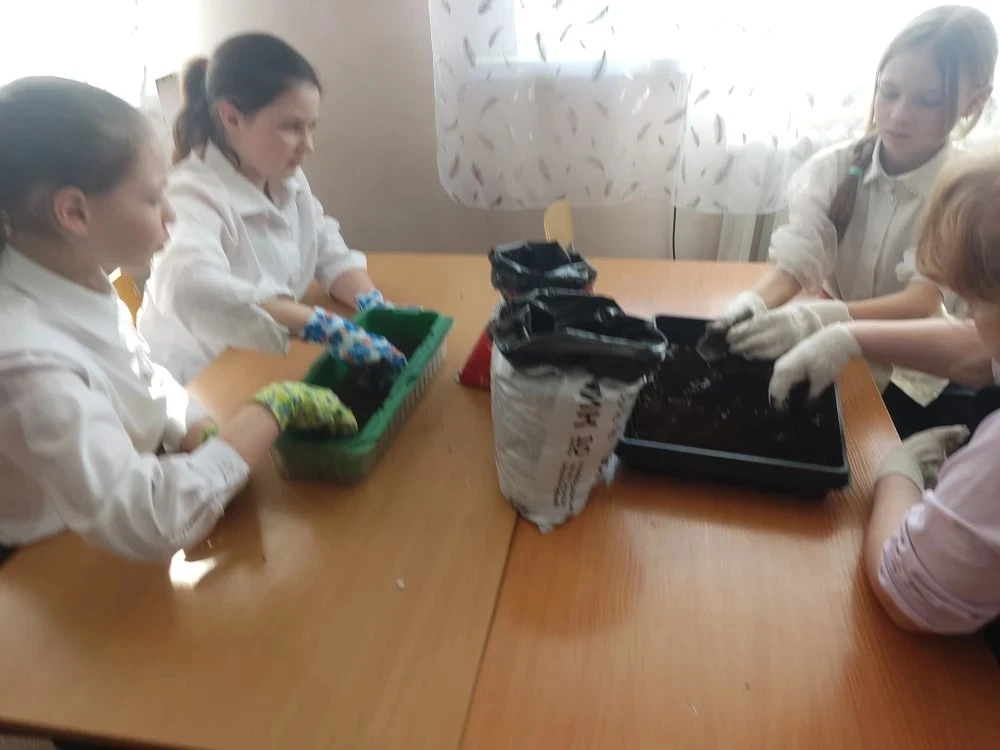 За период январь-март были подготовили ящики под рассаду, земля, отобраны семена цветов «Бархатцы», «Петуния», «Цинния», «Веселые ребята», «Настурция», «Календула» для школьной клумбы. Семена растений «Шалфей», «Лаванда», «Чабрец», «Мята» для посева в Аптекарский огород.