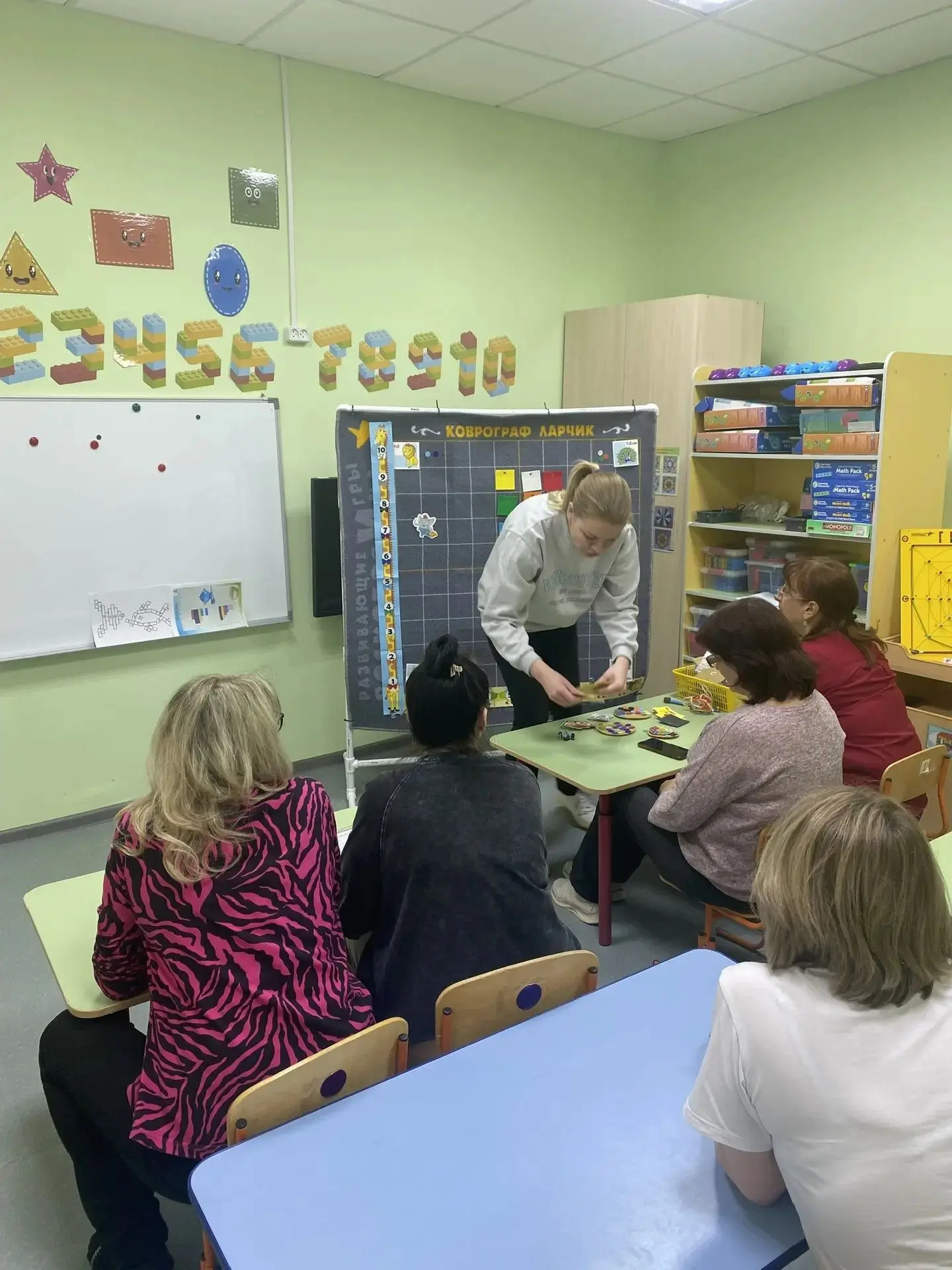 В рамках муниципального проекта «Предшкола: Успехи. Проблемы. Возможности» состоялся практикум для педагогов по формированию элементарных математических представлений (ФЭМП) с использованием развивающего пособия «Коврограф Ларчик».