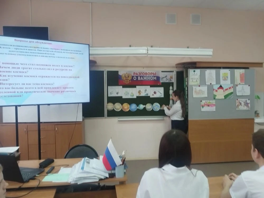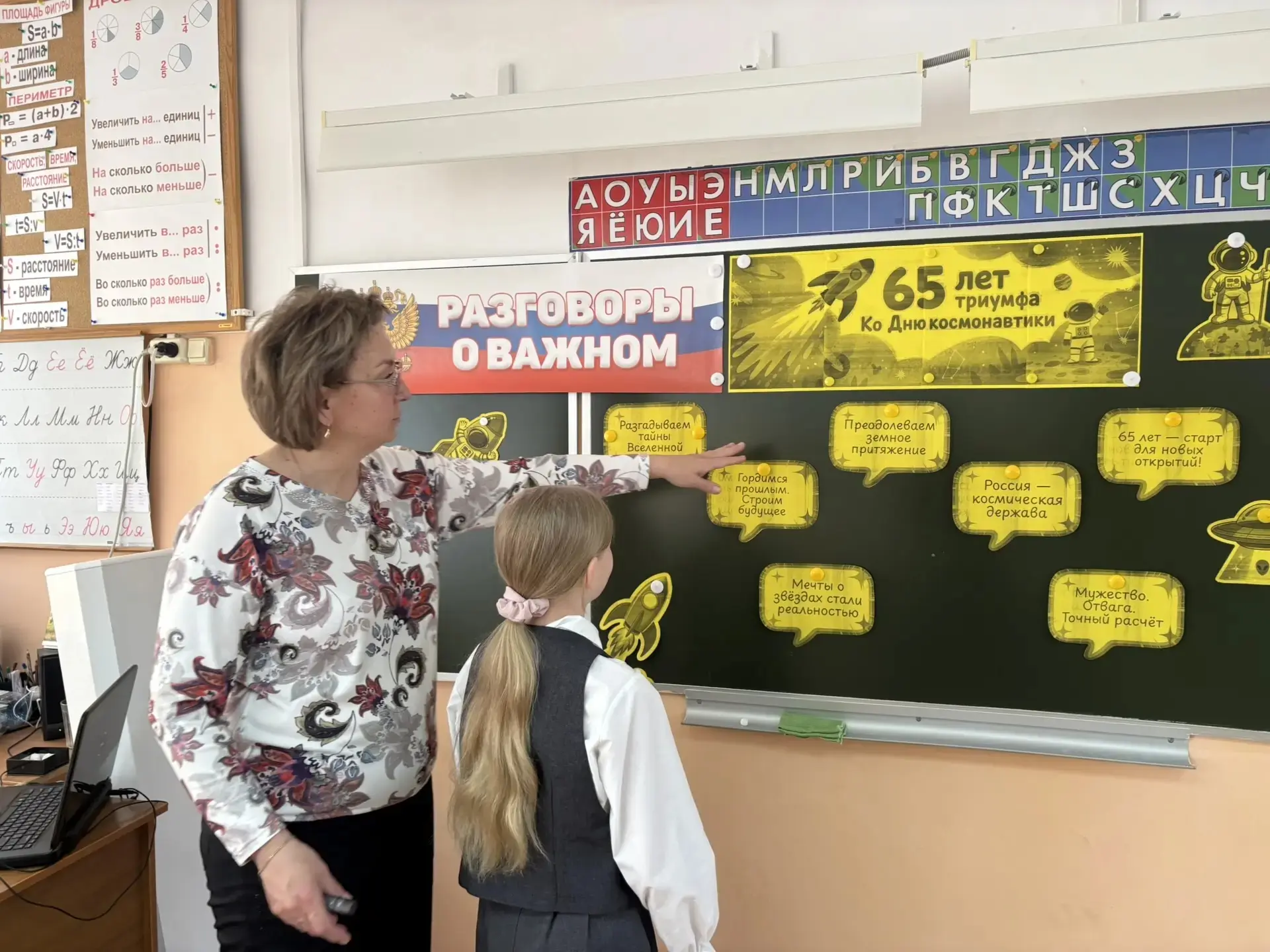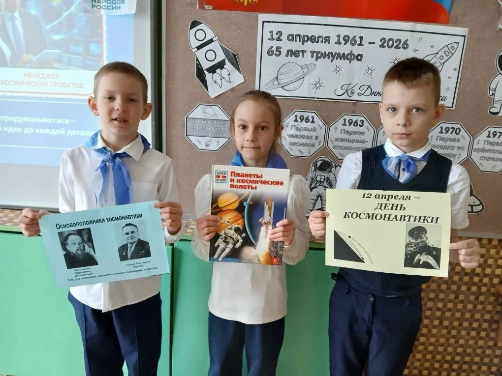 На уроках говорили не только о подвиге Гагарина, но и о других великих страницах отечественной космонавтики: первой женщине-космонавте Валентине Терешковой, выходе Алексея Леонова в открытый космос, рекордах Валерия Полякова и достижениях современной космической отрасли. Особое внимание уделили тому, как космические технологии помогают нам в повседневной жизни — от навигации до мобильной связи и прогноза погоды.