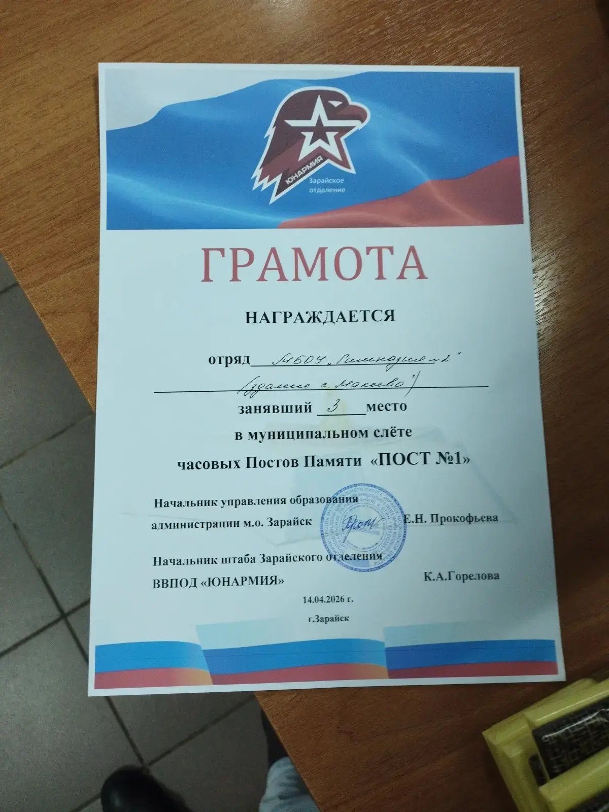 В стенах нашей родной гимназии прошёл муниципальный слёт часовых Постов Памяти «Пост №1» м.о. Зарайск, в котором активное участие принял и наш юнармейский отряд "Полярный лис"
