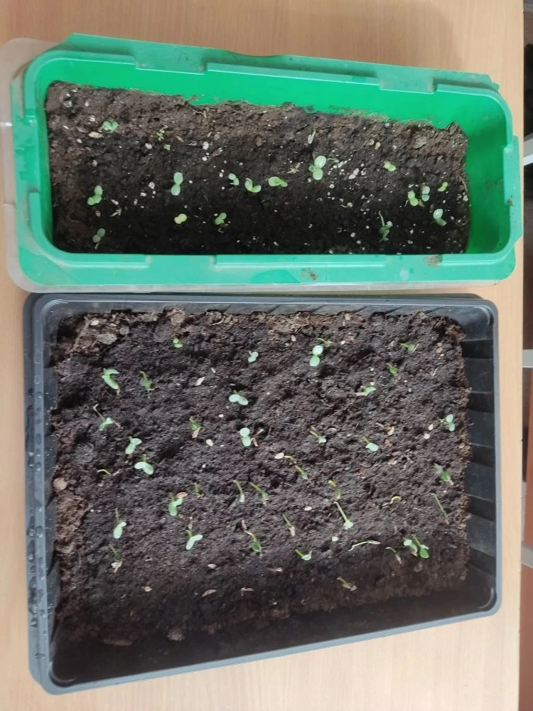В апреле месяце во время посева семян учащиеся учились выполнять работу в определенной последовательности, у них формировалось представление о том, что растения живые и могут расти, если для них созданы условия: вода, свет, тепло. Они аккуратно укладывали семена в углубления подготовленной почвы и ежедневно наблюдали за всходами растений. Они уже дали всходы, появились первые листочки.