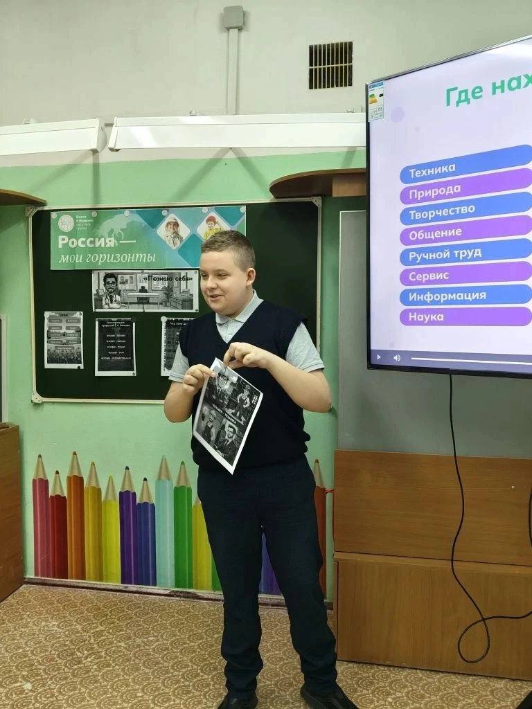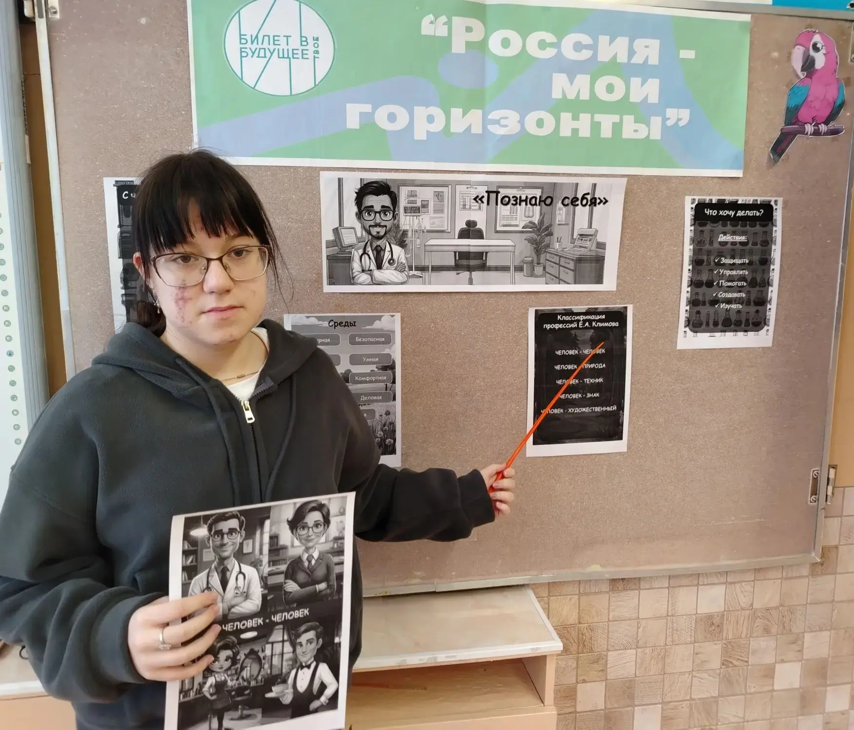 15 января 2026 года в рамках курса внеурочной деятельности «Россия — мои горизонты» в МБОУ "Гимназия 2" (зд.пос.Зарайский)прошло профориентационное занятие на тему «Познаю себя» (часть 2). Это занятие было направлено на помощь школьникам в самопознании, осознании своих интересов, способностей и ценностных ориентиров, а также на формирование навыков, необходимых для осознанного выбора будущей профессии и жизненного пути.