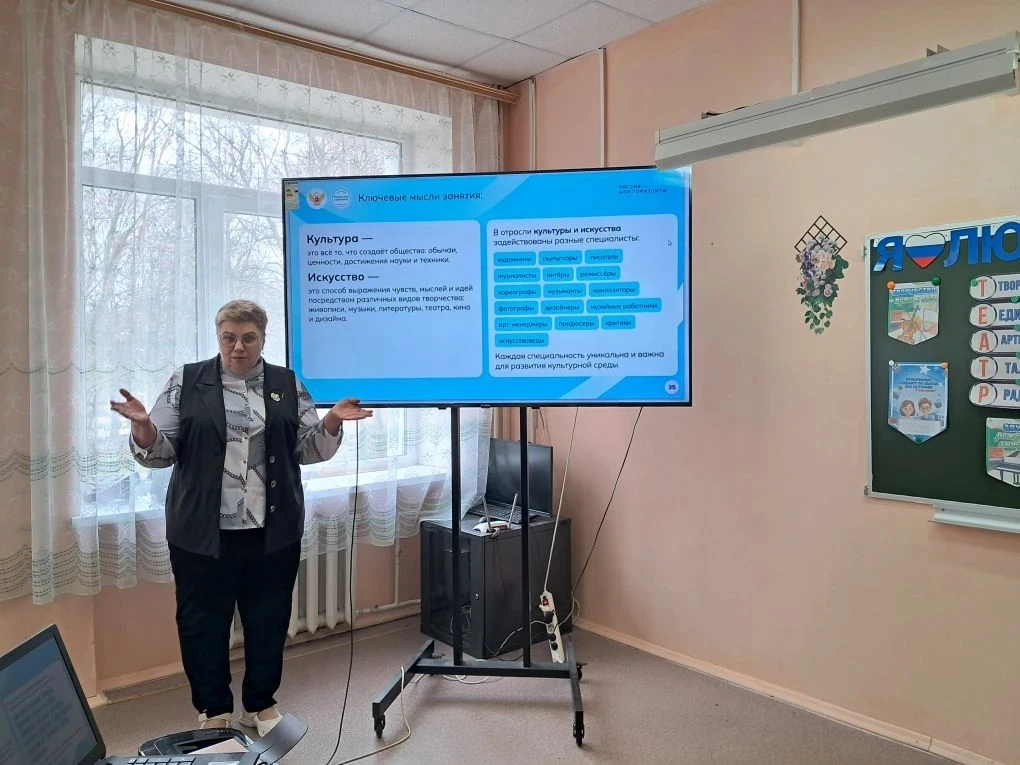 На занятиях учащиеся попытались погрузиться в вопросы творческой индустрии, знакомились с профессиями сферы искусства и культуры. А также поговорили о том, что сфера культуры и искусства представляет собой обширную и перспективную область, открывающую перед молодыми людьми неограниченные возможности для реализации своего творческого потенциала и личного вклада в культурное наследие страны. А ещё поговорили о том, что путь в сферу культуры и искусства может начинаться уже в школе и какие школьные знания могут пригодиться в будущей работе в сфере культуры и искусства. Подводя итог занятия ребята обсудили и пришли к выводу, что сфера культуры и искусства намного шире, чем кажется на первый взгляд. Здесь важны не только талант и творческие идеи, но и знания, технологии, умение работать в команде и понимать, для кого создаётся проект.