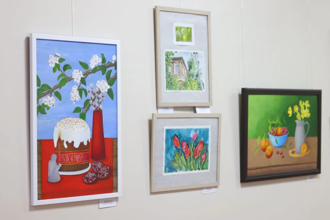 Работы выполнены в разных техниках: акварель, гуашь, пастель, масло. Среди «экспонатов» множество сочных фруктовых и цветочных натюрмортов.