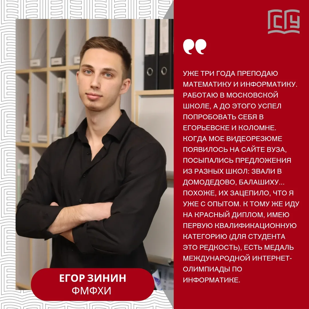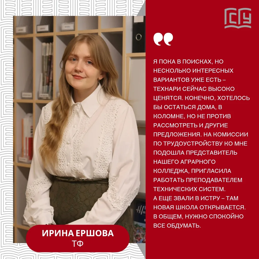 Интерес к молодым специалистам этого года большой: уже 26 приглашений на собеседования из Домодедова, Дмитрова, Клина, Раменского, Балашихи и Дубны. У некоторых кандидатов даже есть выбор: так, студента ФМФХИ Егора Зинина позвали сразу на две встречи. Также нарасхват филологи.